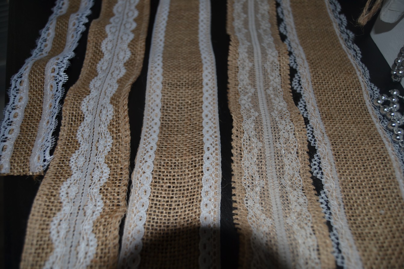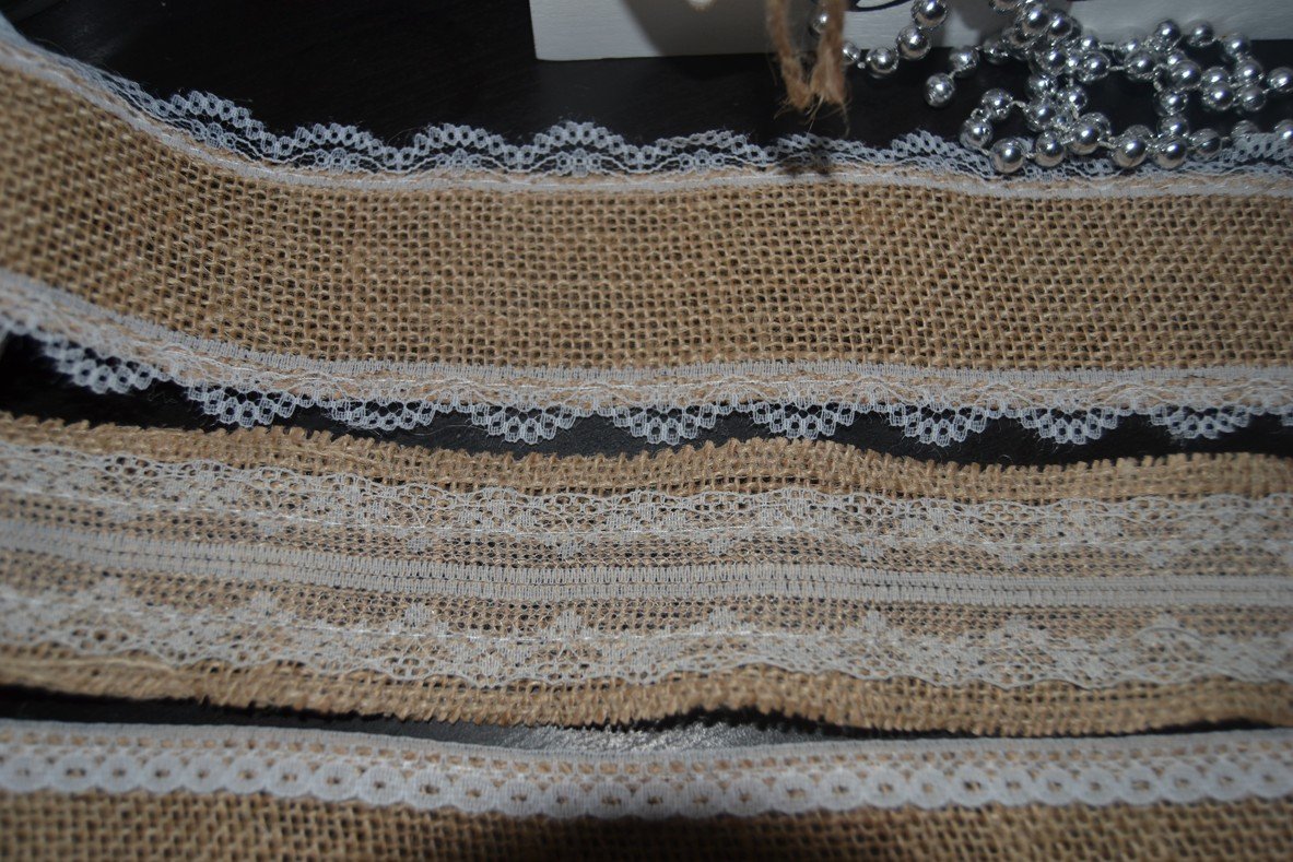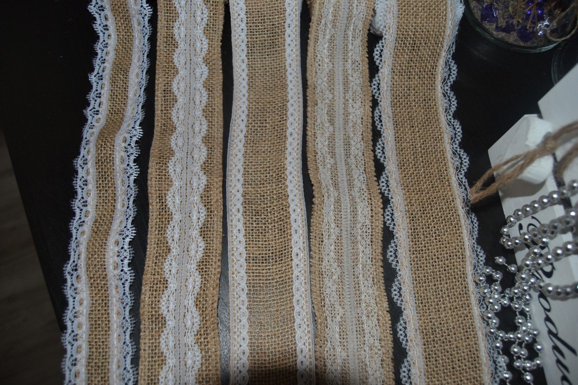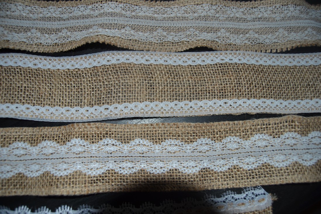 Jutové stuhy s čipkou rôznych typov