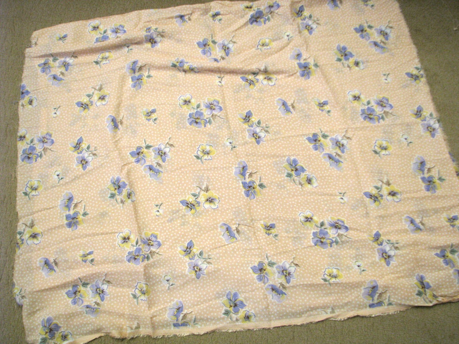 Nepoužitý kus tenkej vzdušnej látky (pravdepodobne viskóza), ideálnej na leto, s farebným vzorom fialovo-žltých kvetov na svetlom marhuľovom podklade s malými bielymi bodkami. Je to veľmi príjemná, jemná látka, trochu presvitá. Bez poškodení. Má šírku vrátane okrajov cca 139 cm (priečne je trochu elastická), dĺžka je cca 79 cm. Ideálna na top či blúzku. Cena je za celý kus, nestrihám.