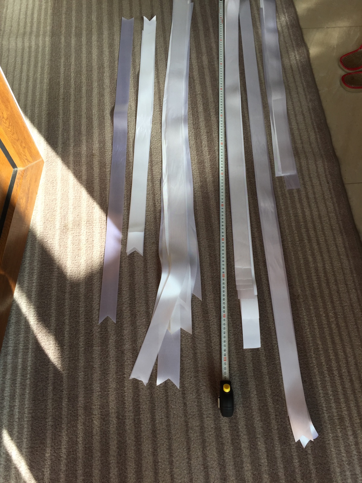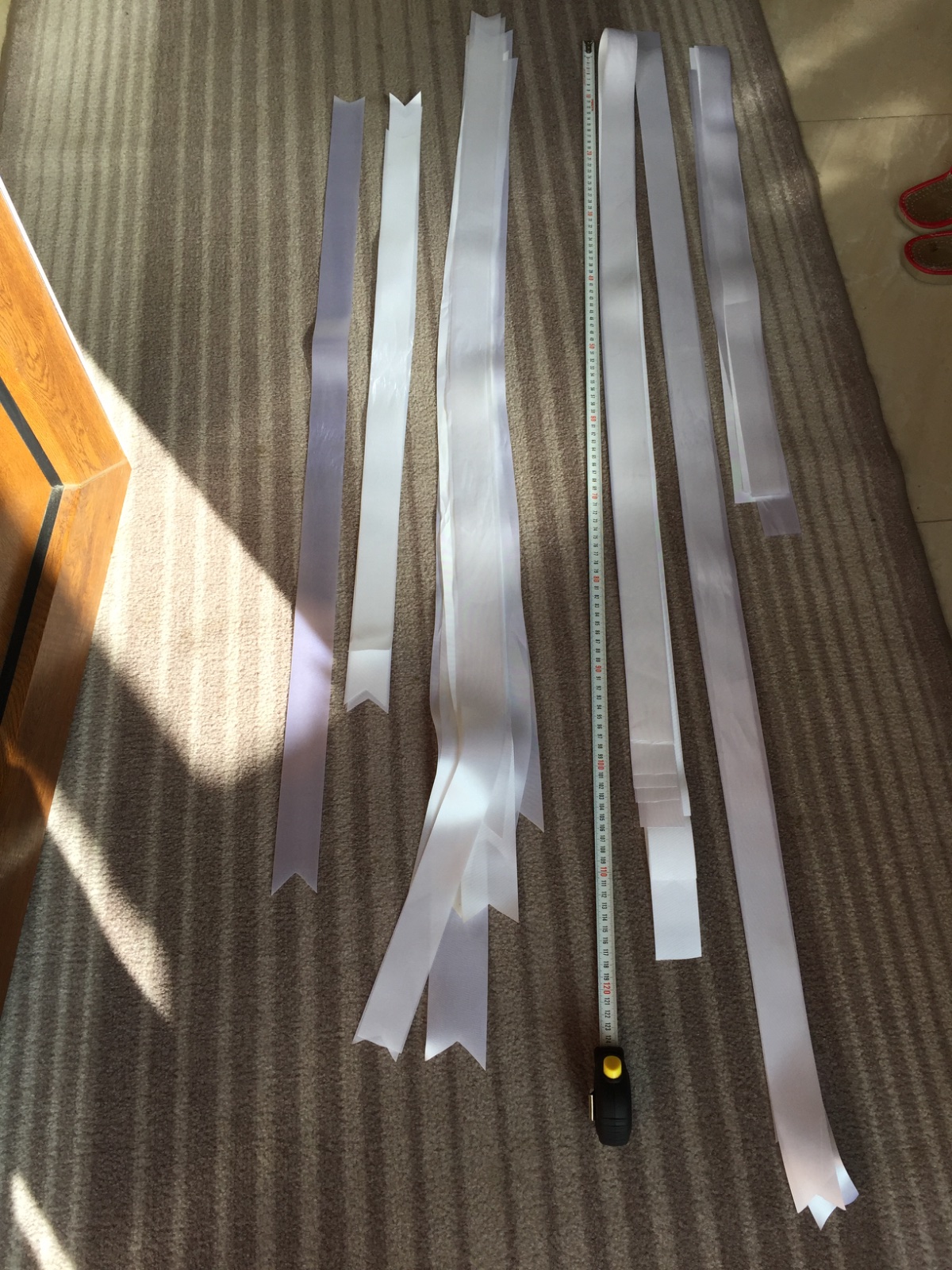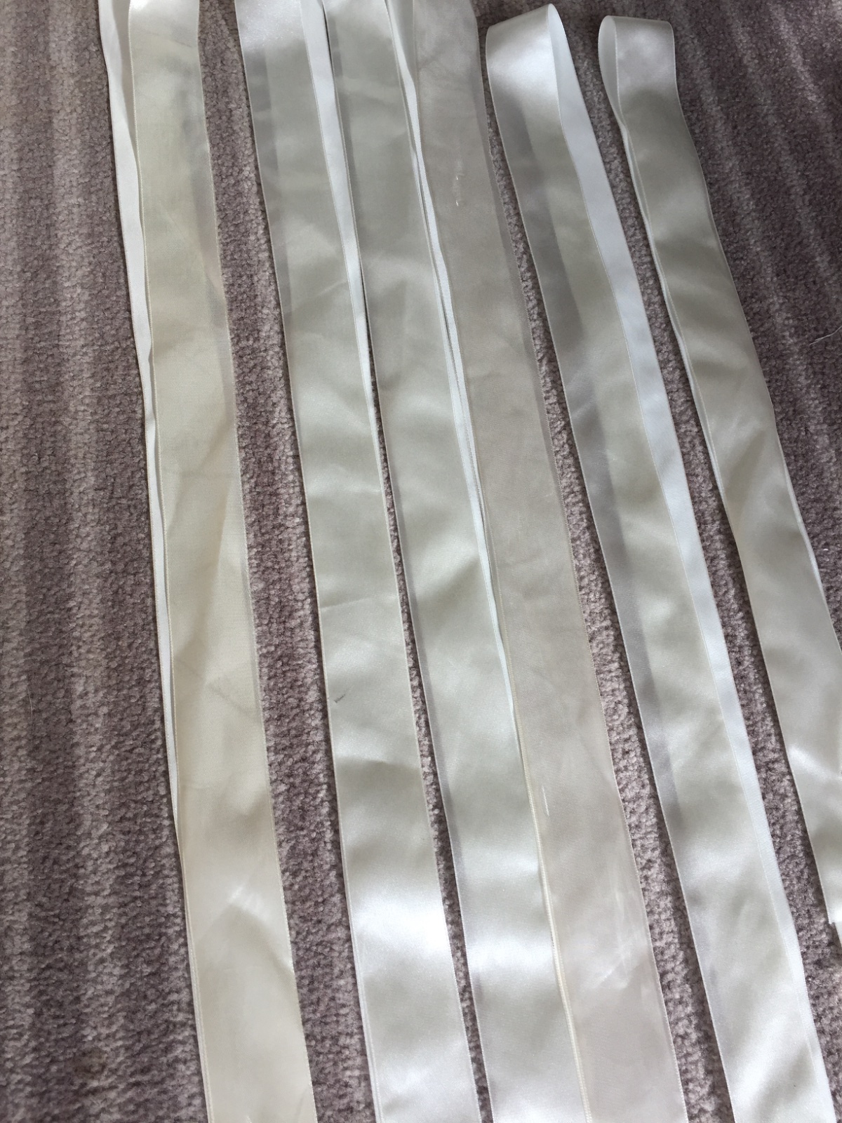 8ks veľká masla, 4 ks malá mašľa. Dokopy cca 31 metrov bielej saténovej stuhy nastrihanej v rozmeroch približne 0,8m, 1m, 2m možné použiť na výzdobu. Hrúbka 4cm alebo 5cm