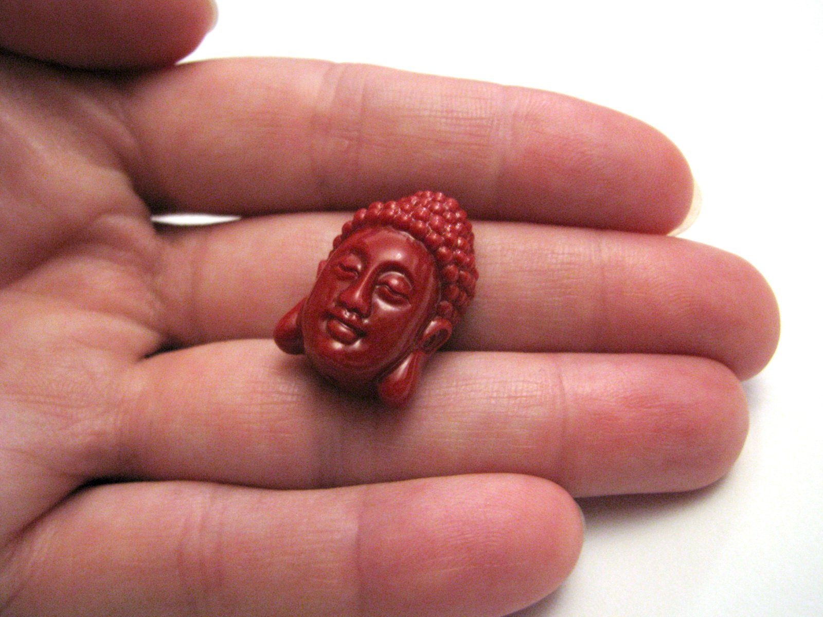 Tmavočervená korálka Budha - hlava
