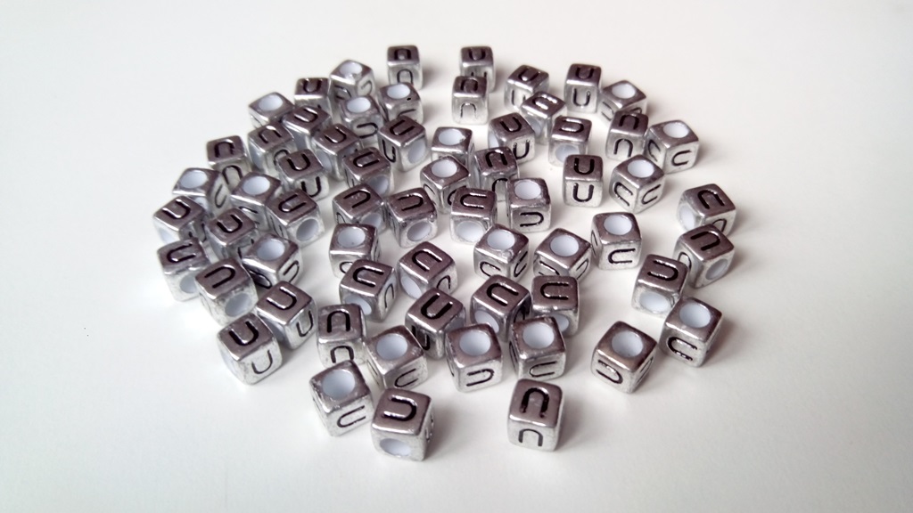 Písmenka strieborná 6x6, materiál plast. Cena za jeden kus 0,05 €