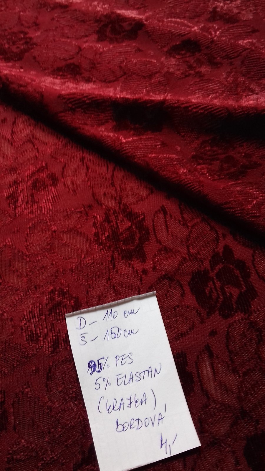 Predám krásnu bordovú látku- krajku na ďalšie šitie.... vhodná na ušitie blúzky, topu a pod.