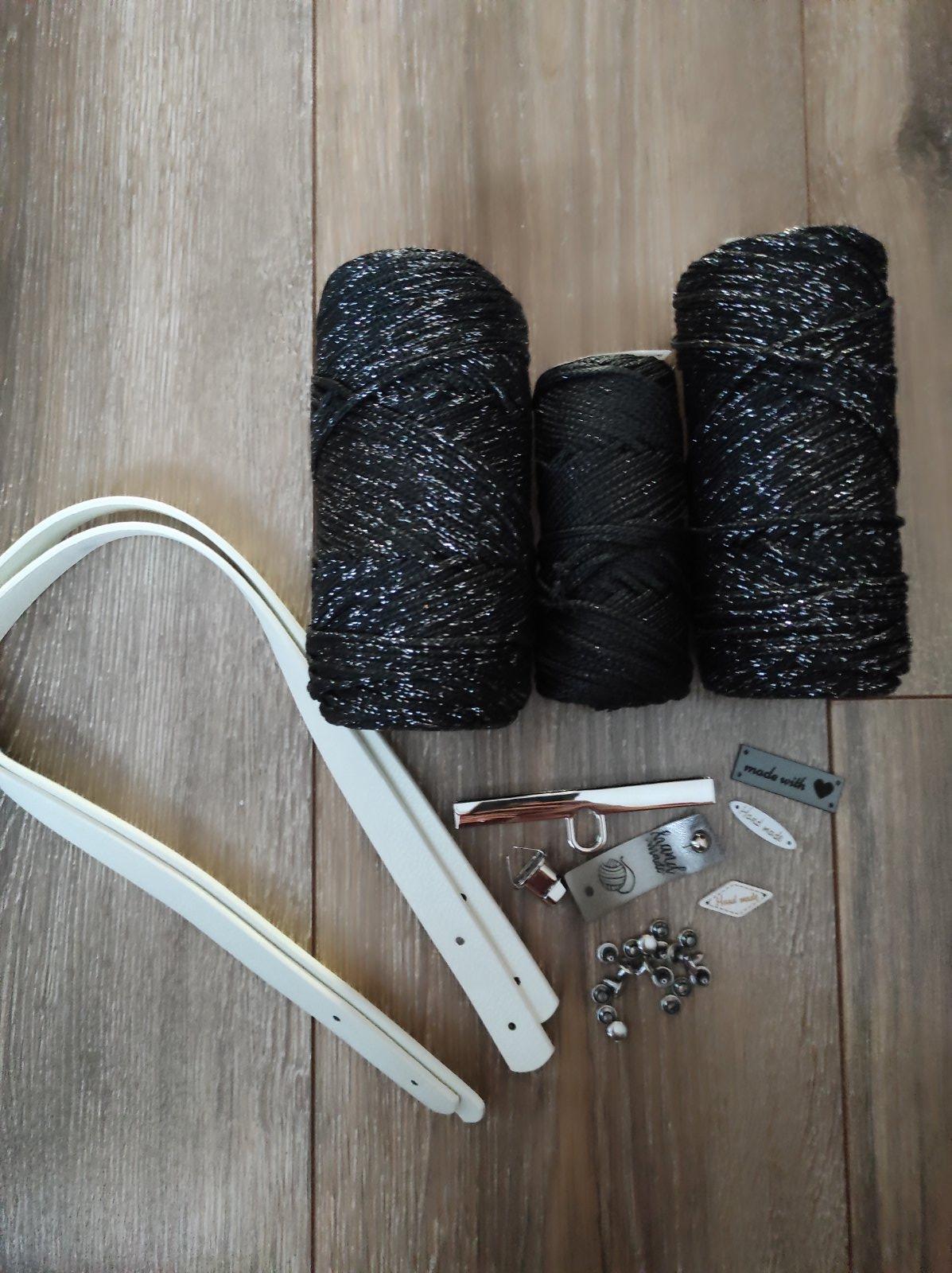 sada obsahuje presne to co je na foto. 500g spagatu, zapinanie na kabelku, nasivky aj rucky s nitami. spagat vhodny na hackovanie aj na vysivanie plastovej kanava kabelky.