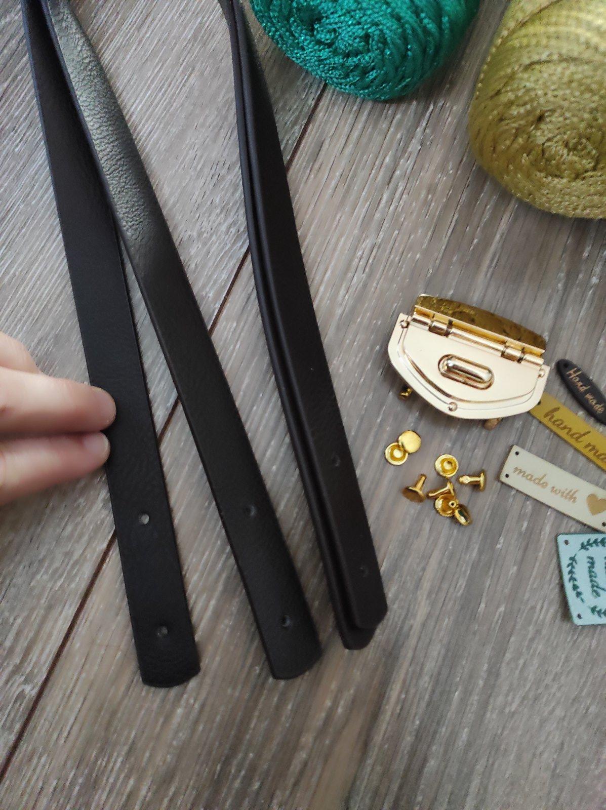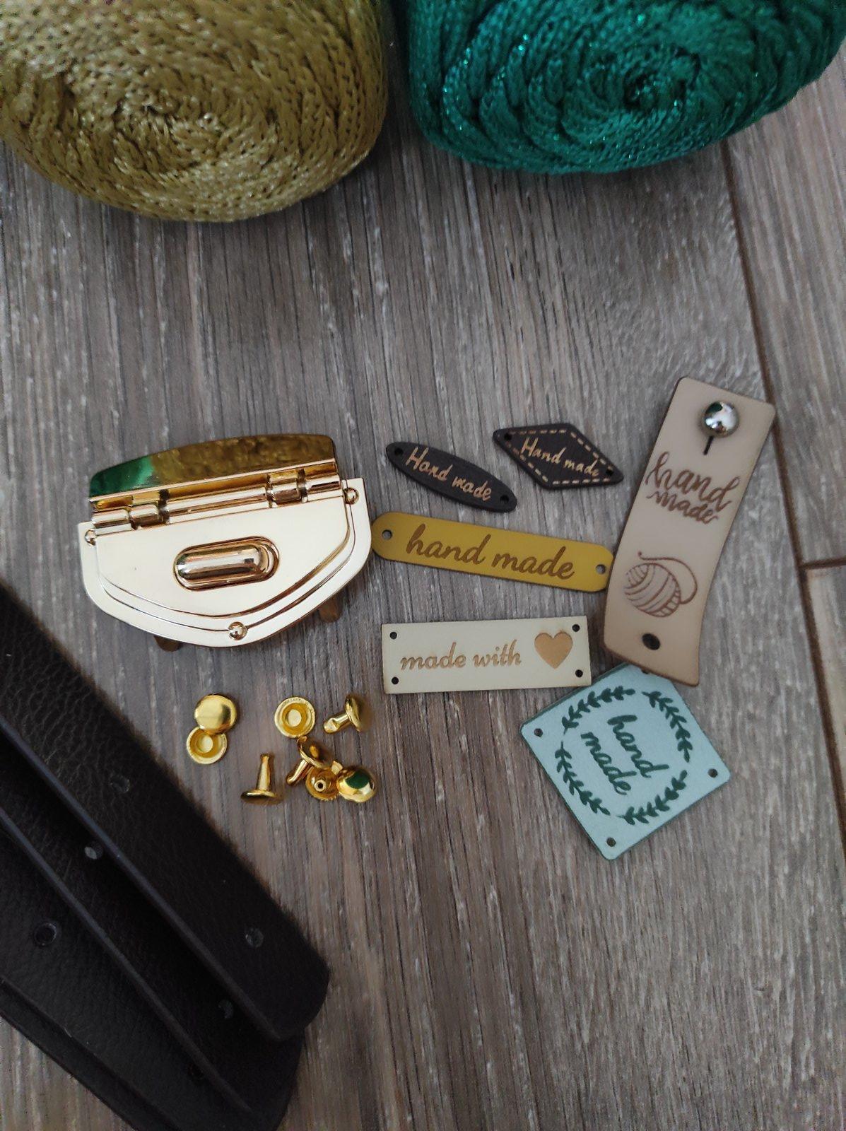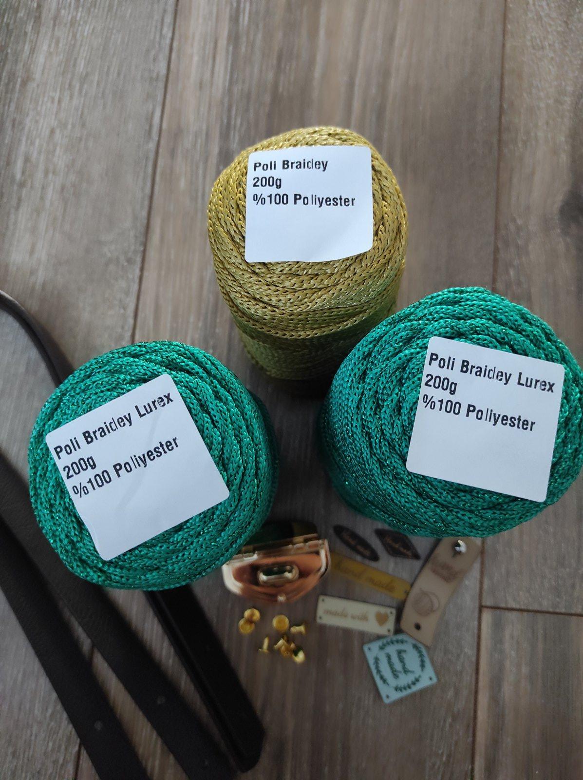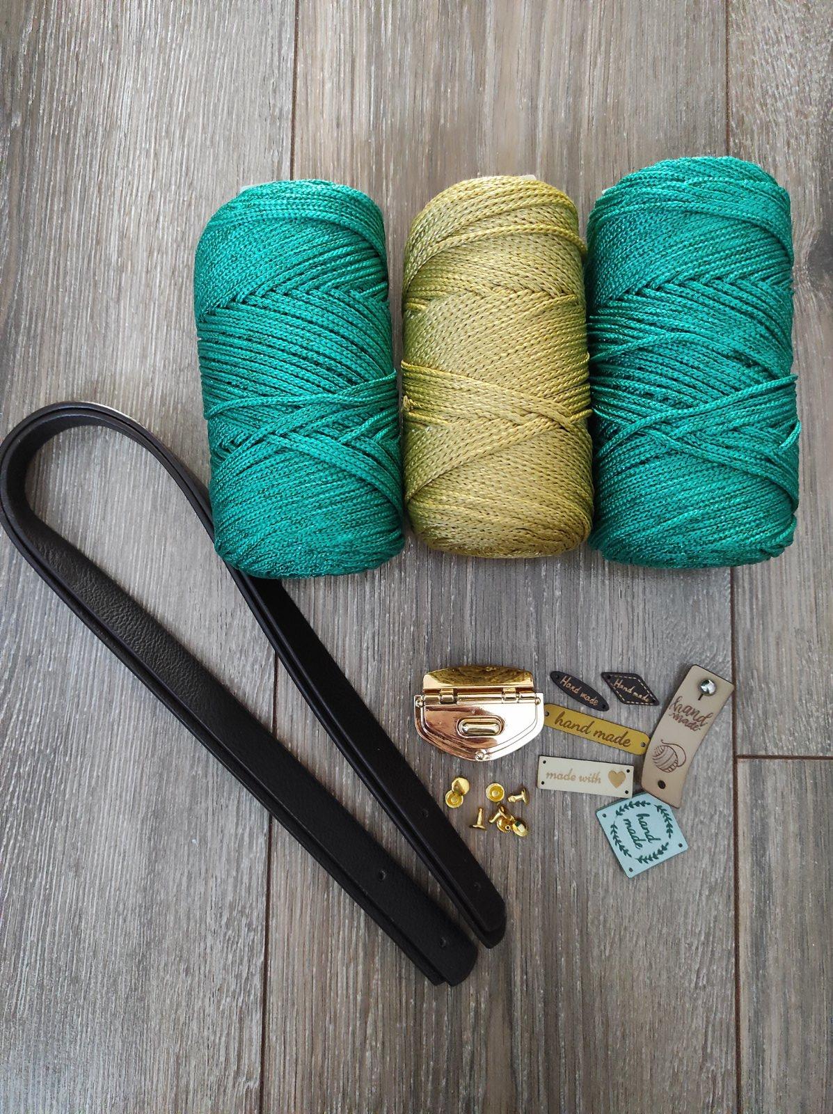 ponukam material na kabelku. 600g pekneho leskleho spagatu ktory moze byt aj na vysivane kabelky na plastovu kanavu. 1x zlate zapinanie, 2x tmavohneda rucka na kabelku s nitami a nasivacie stitky. v cene je vsetko tak ako na foto. mam aj ine farby. kuk moje inzeraty.