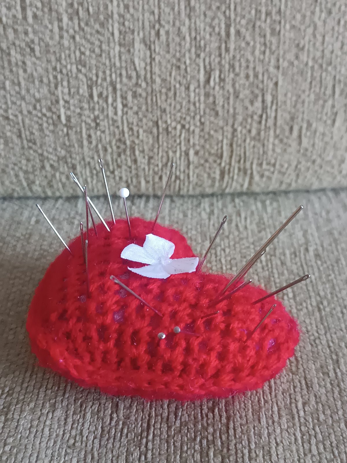 Predám vankúšik na ihly, ihlice, špendlíky... Je v tvare srdiečka s dekoračnou mašlou. Len 1,25€. Minimálne používaný. Keď si vyberiete ešte niečo z mojich inzerátov, môžem dať zľavu 😁 platba vopred na účet