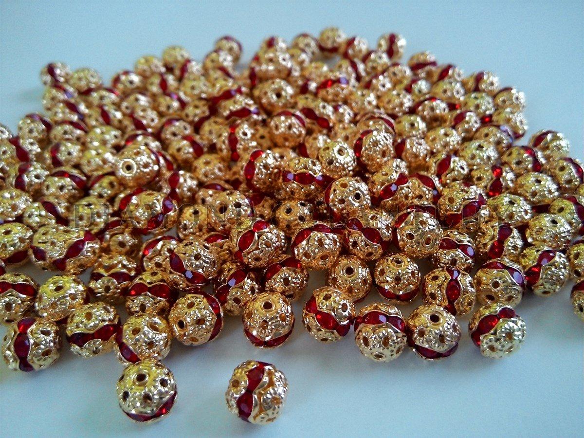 Kovové štrasové korálky 8 mm, cena za jeden kus 0,23 €. Materiál kov a kamienky.