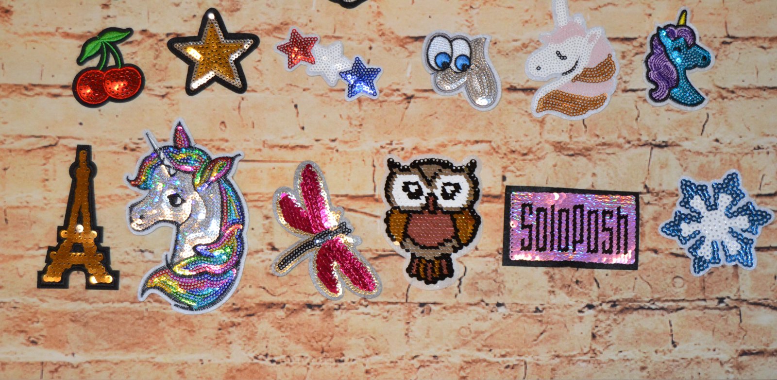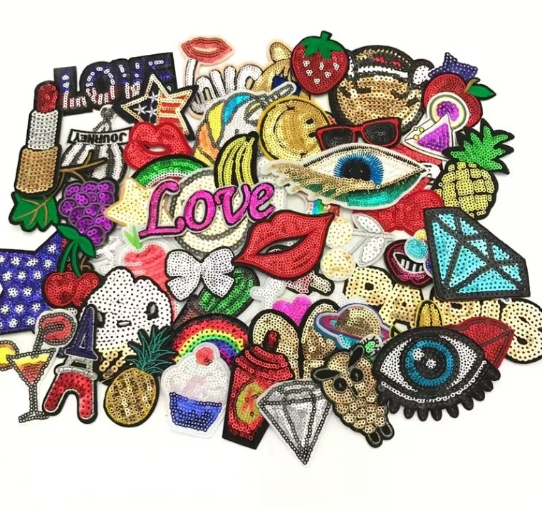 Pestré aplikácie s flitrami/nášivka/nažehľovačka