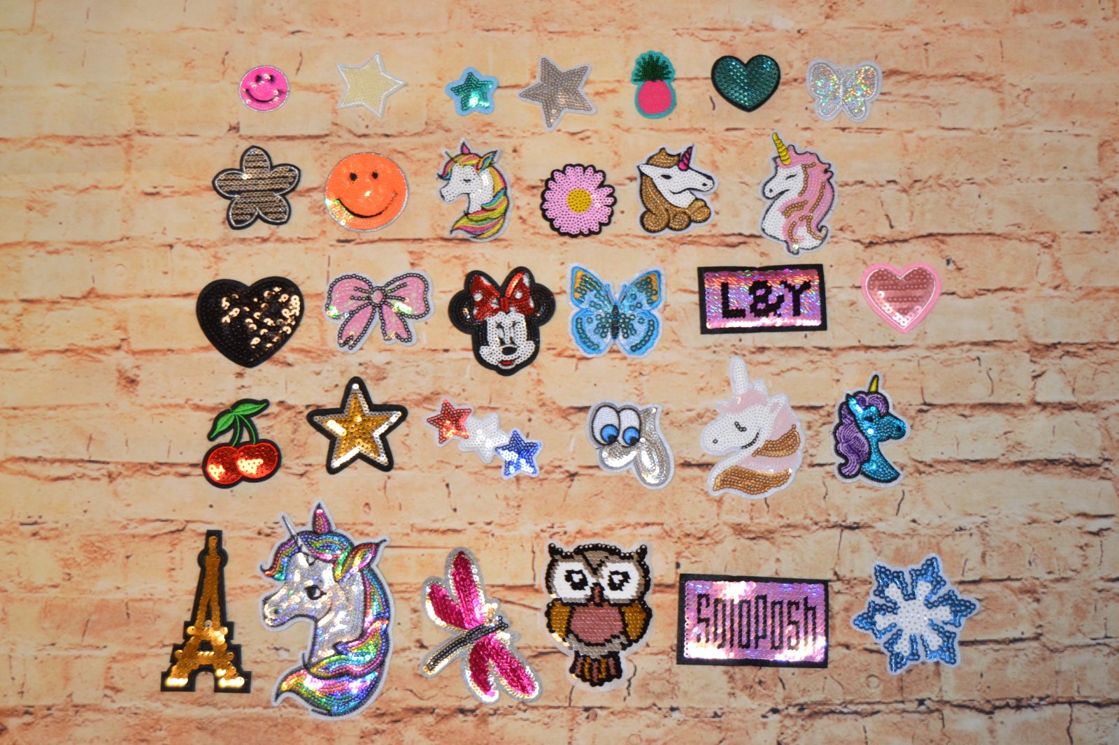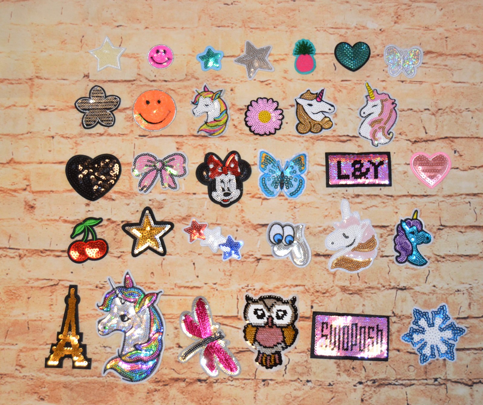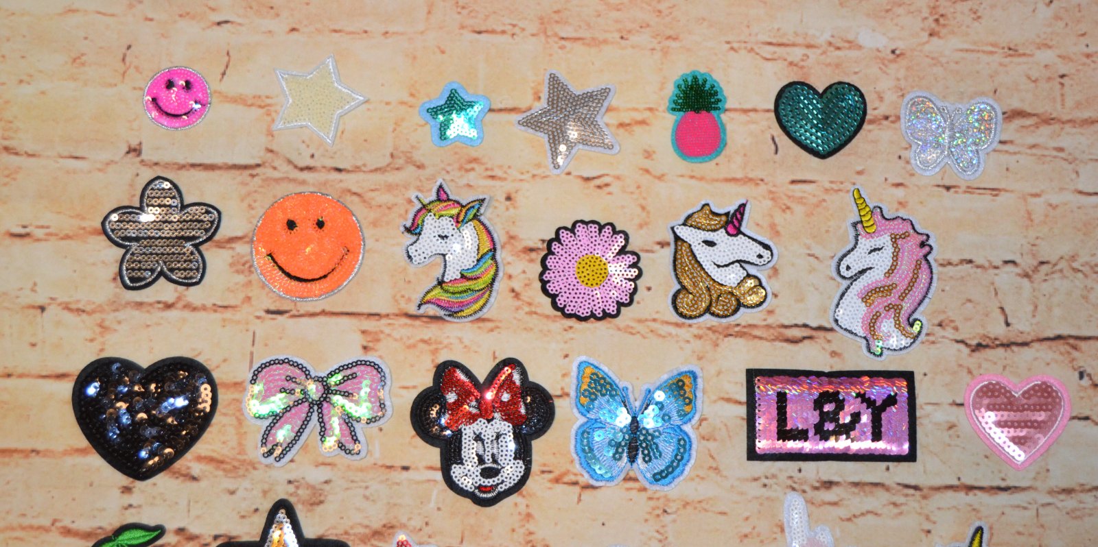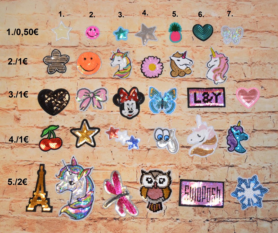 SkladomPestré aplikácie s flitrami/nášivka/nažehľovačka od 0,50€/ks