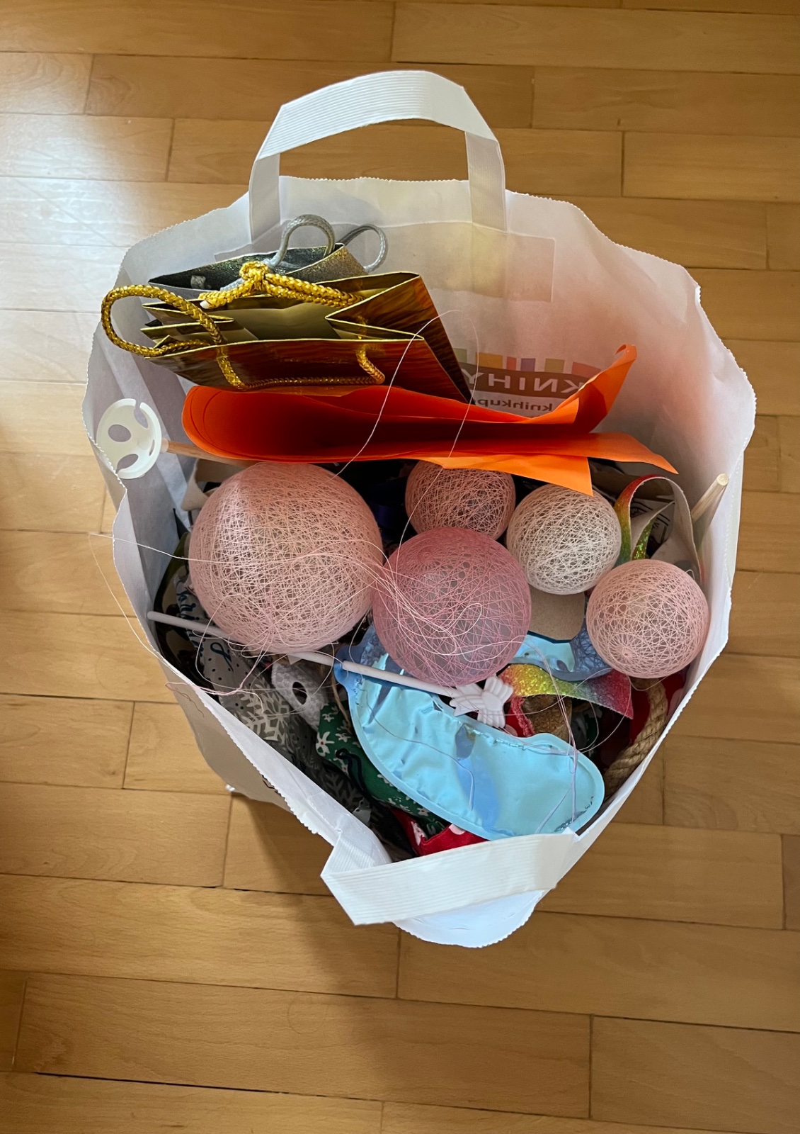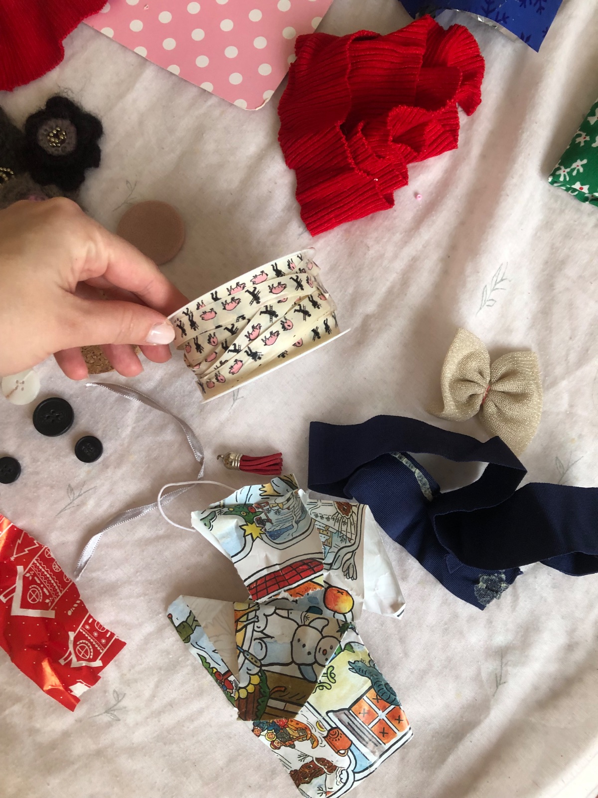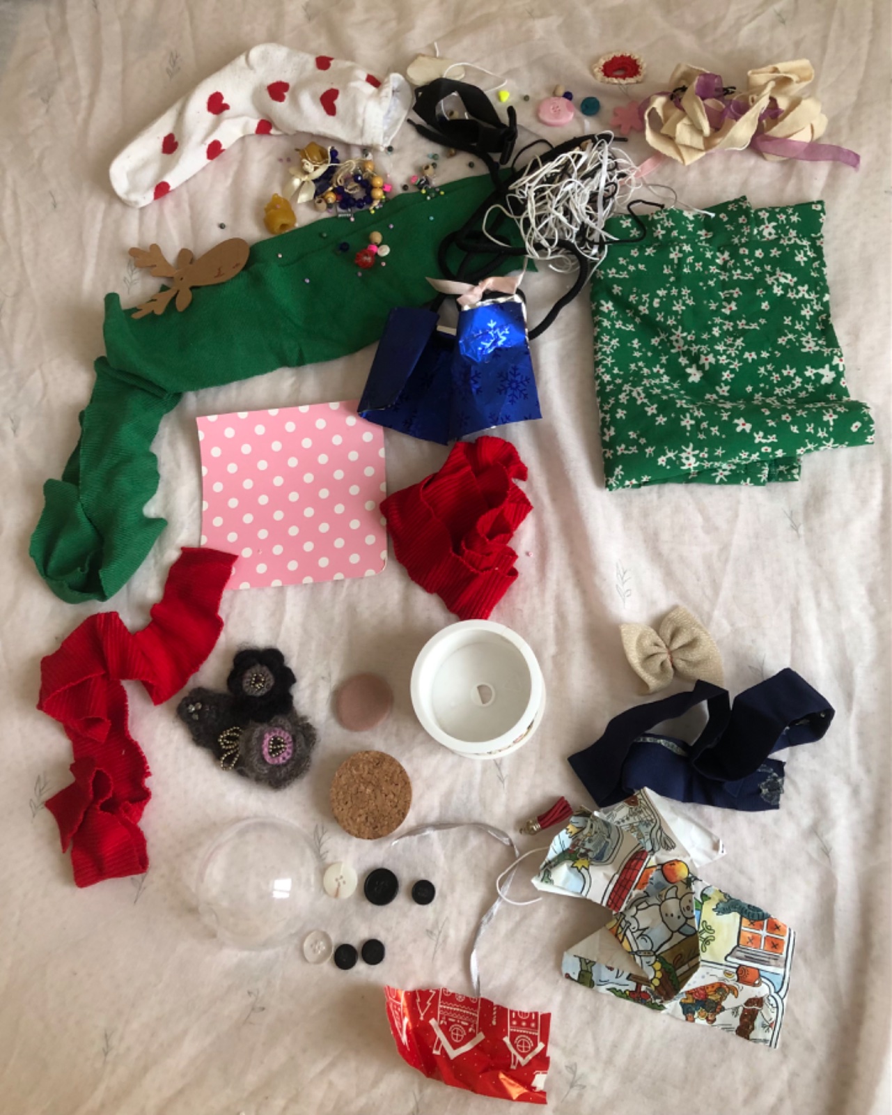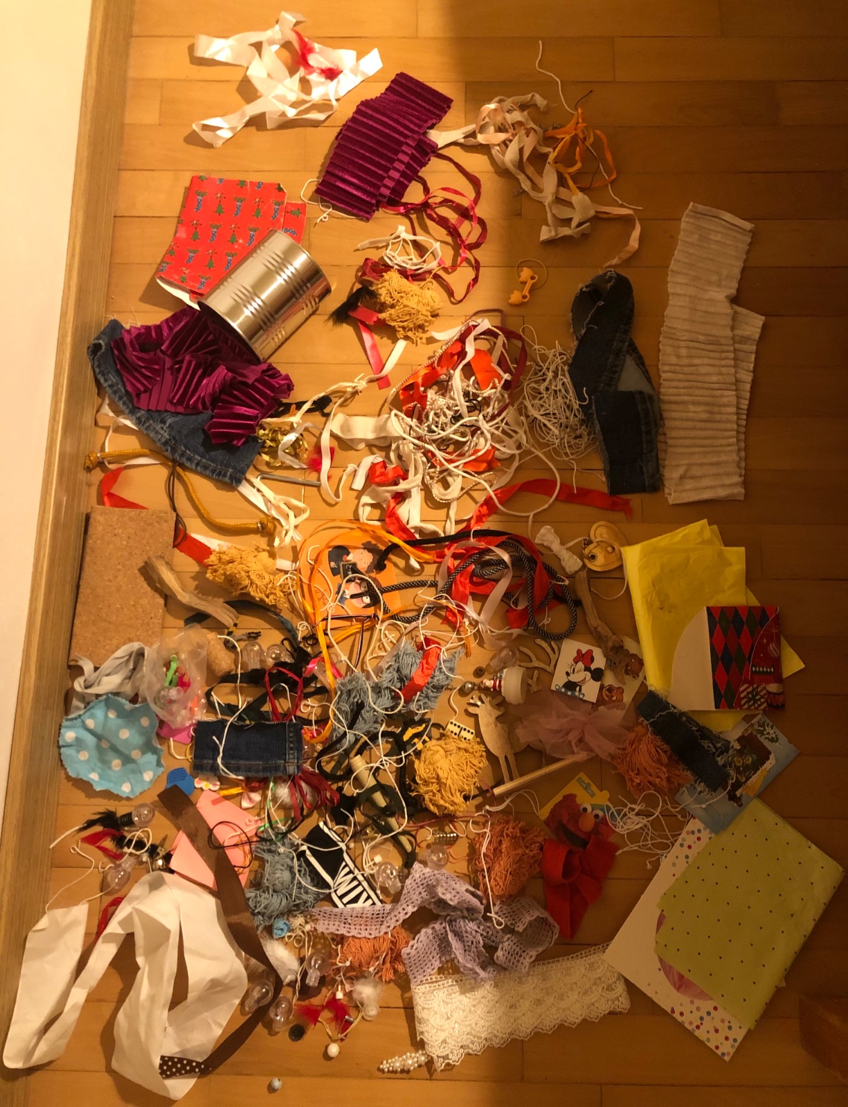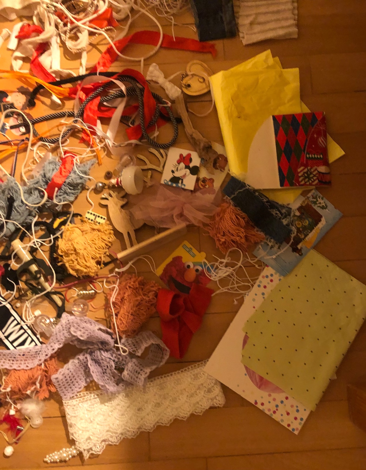 - stužky, šnúrky, strapce, papiere, kúsky látok, korálky…