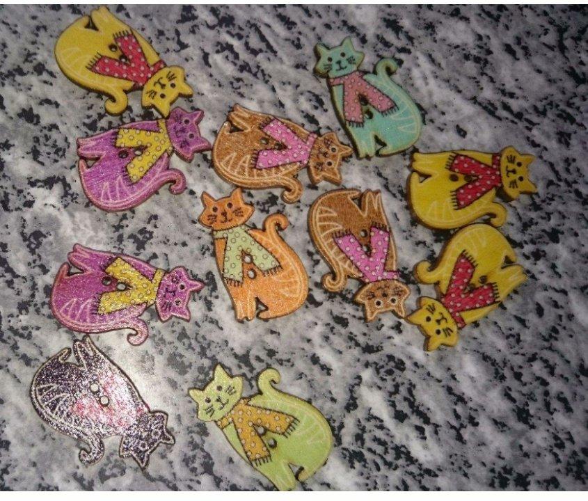 Drevo mačky gombíky 10ks