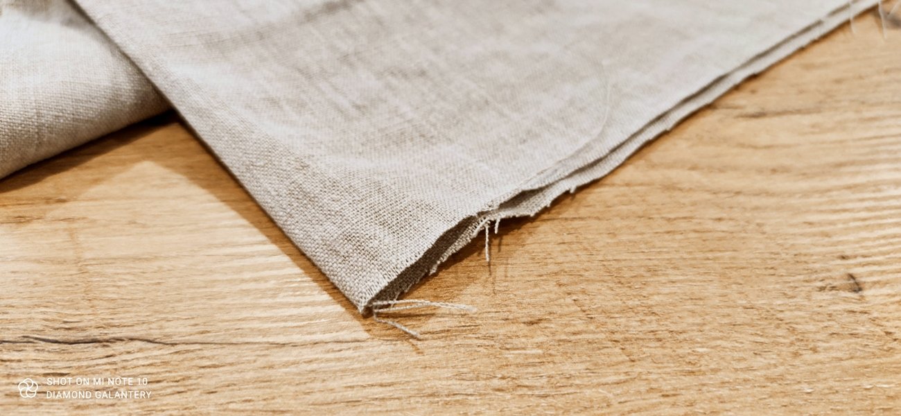 Ľanová látka. Materiál: 100 % ľan. Gramáž 230 g/m². Šírka 148 cm. Zrážanlivosť látky 3-4 %. Ošetrovať pri teplote 30 °C. Výrobok sa nesmie bieliť prostriedkami uvoľňujúcimi chlór, žehlenie s maximálnou teplotou do 150 °C Látka sa posiela v celku. Cena je uvedená za 10 centimetrov (Jednotková cena za jeden meter je 13,90 €).