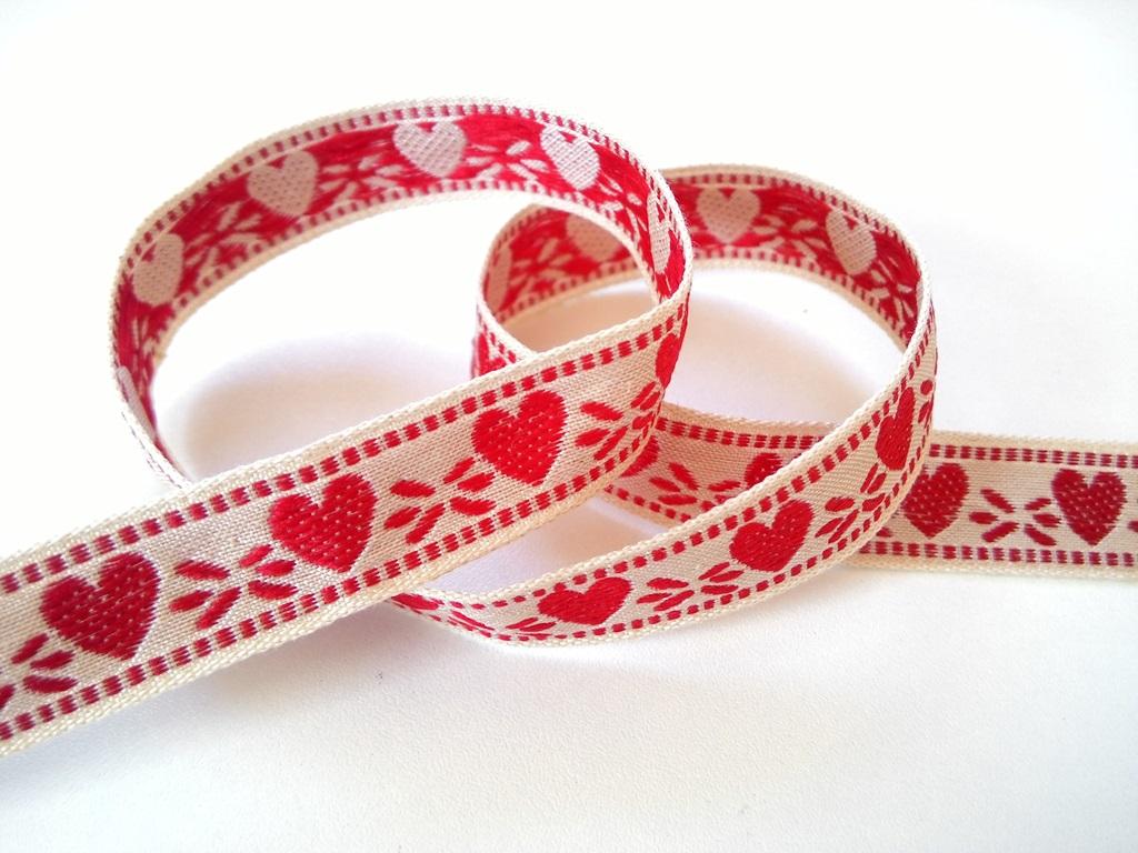 Vyšívaná bavlnená srdiečková stuha 15 mm. Cena za jeden meter 1,50 €
