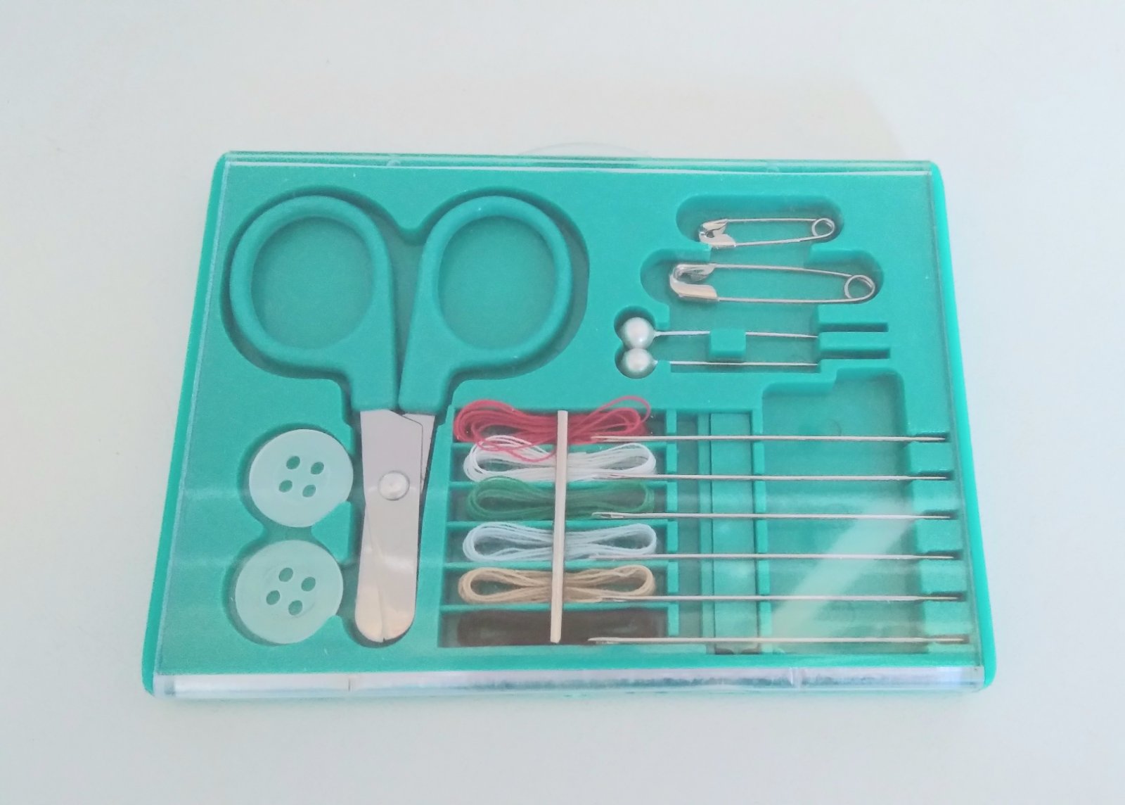 Sada cestovná na šitie nožnice ihla niť gombík