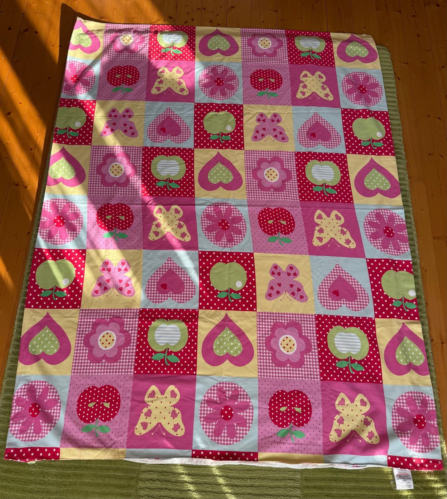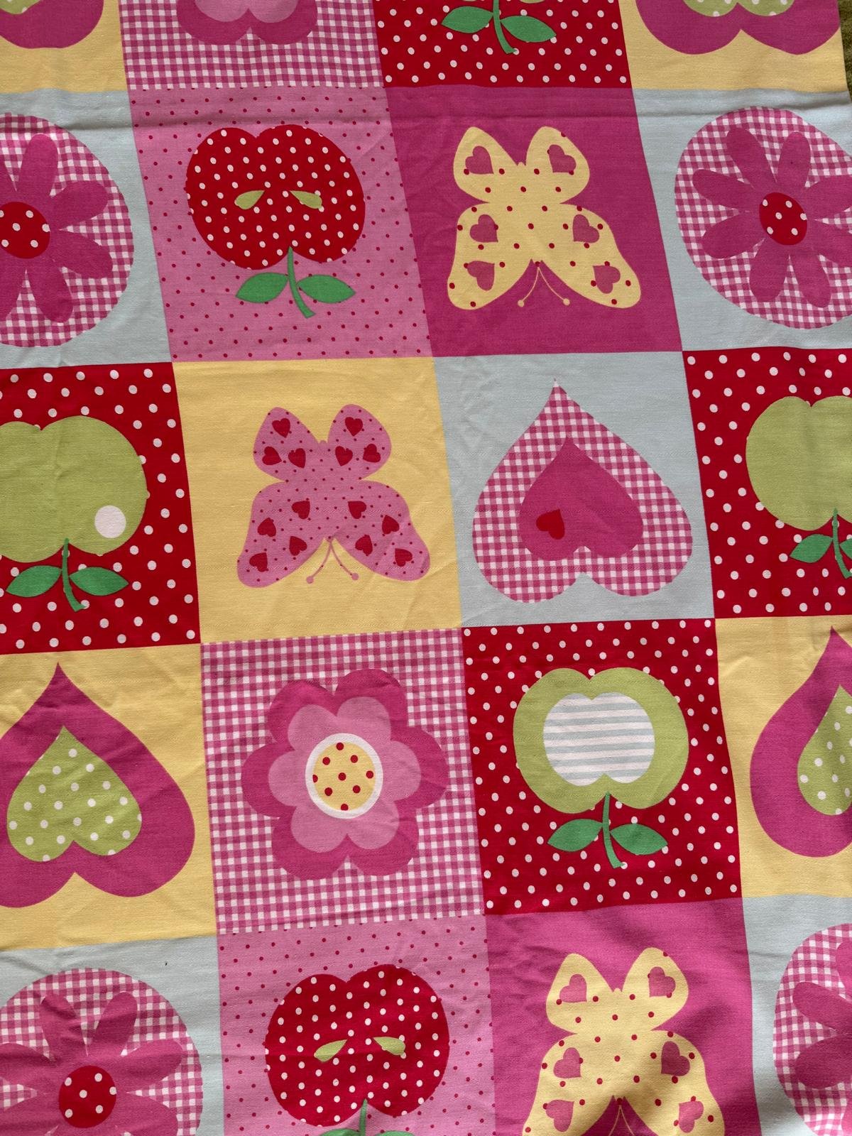Látka 170x140 cm, je to povodne asi obliecka alebo záves od NEXT...je tam aj podsitie, vidieť na foto...krásne jasne farby, vhodná na niečo do dievčenskej izby,cena plus posta