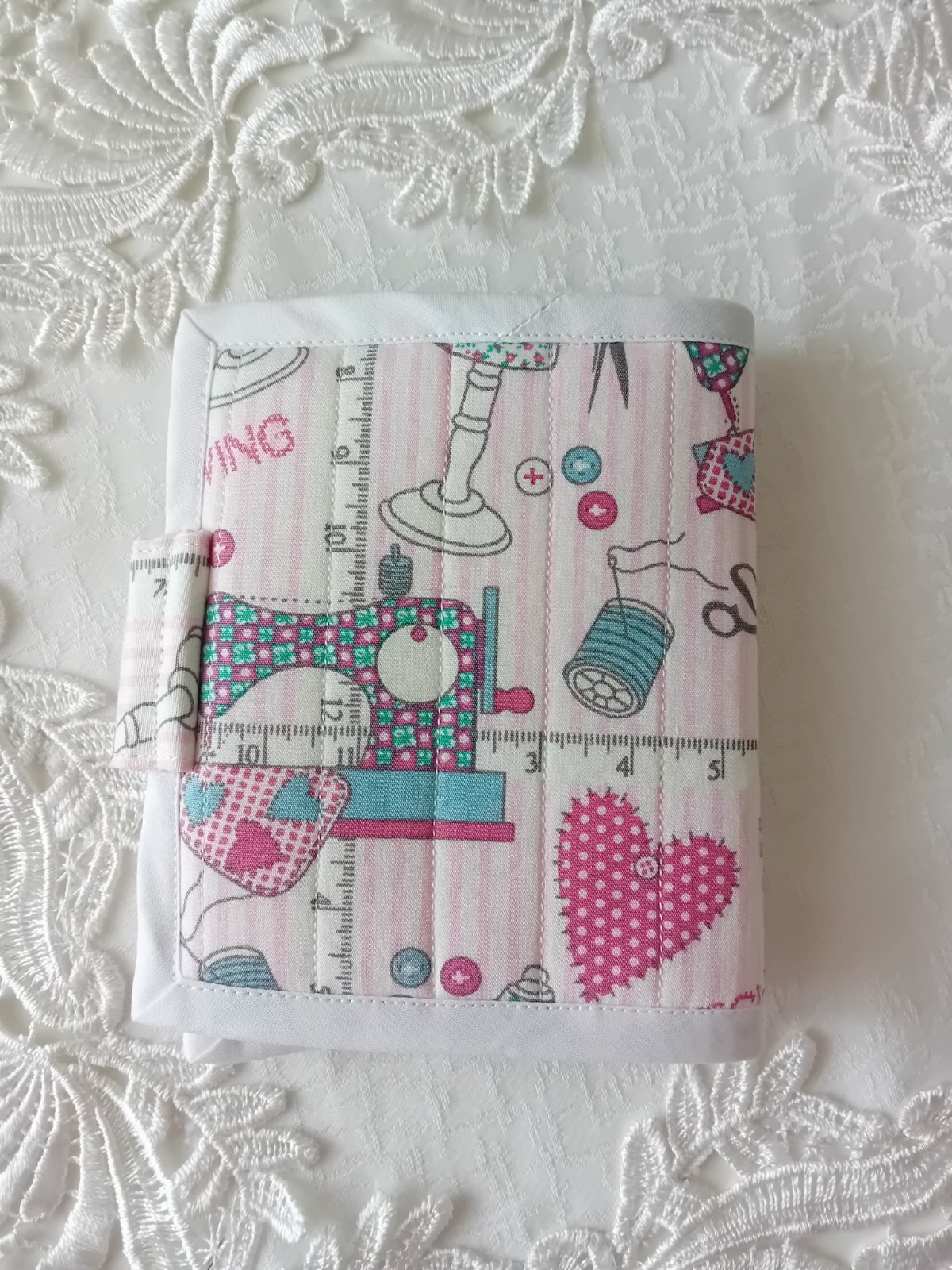 Veľmi pekný ihelníček, šitý z kvalitných látok, vystužený a vhodný na ukladanie ihiel, špendlíkov,... Zatváranie na magnetku. Ideálny ako darček.