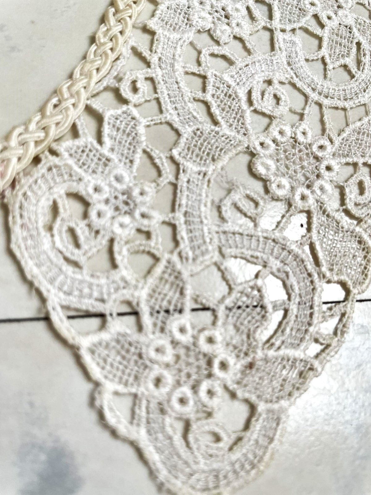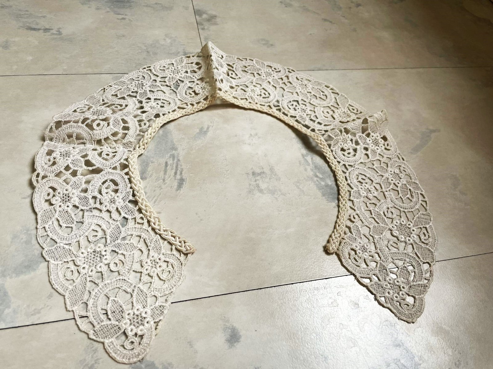 nádherný krémový - smotanovo biely variabilný golierik,vnút. obvod = 38 cm,dá sa prišiť,resp. pripnúť na hocijaké šaty alebo blúzku bez fazónky,krásna práca,veľmi jemný
