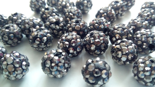 Korálky shamballa 10 mm. Materiál pálený íl, kryštáliky. Priemer dierky cca 1,5 mm. Cena za jeden kus 0,18 €