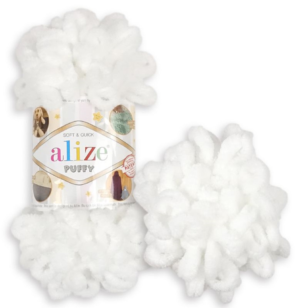 Jedinečné pletenie bez ihlíc či háčika. Potrebujete len dve šikovné ruky. Na dotyk je veľmi hebká a jemná. Vlákno priadze má maličké vlásky teda pôsobí ako plyš. Po celej dĺžke sú predpripravené veľké očká s rozmerom 3,5 cm, ktoré navzájom preplietate a pritom vám vzniká úplet. Priadza Puffy má certifikát OEKO-TEX Standard 100, ktorý zaručuje kvalitu výroby aj zloženia. Priadza je vhodná na pletenie pre deti. Na deku vo veľkosti 120x150cm je spotreba približne 10 klbiek priadze.