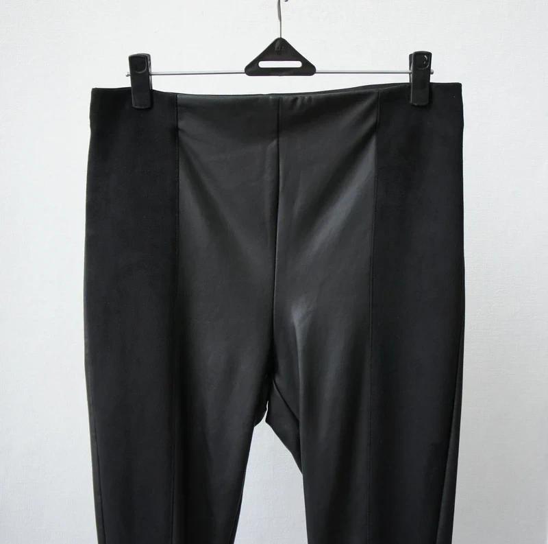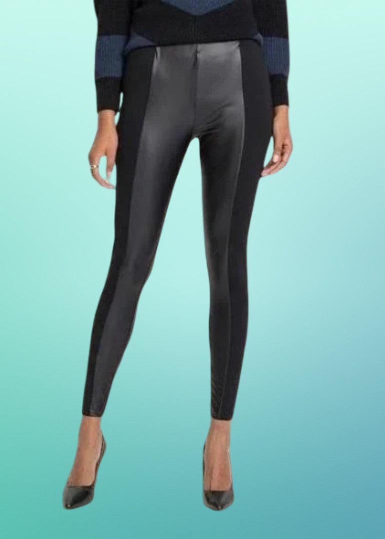 Čierne, priliehavé legíny, ktoré majú vsadené bočné panely z materiálu s koženým vzhľadom, zatiaľ čo zvyšok je z látky príjemnejšej na dotyk .Sú navrhnuté tak, aby sa dali nosiť na rôzne príležitosti, od bežného denného nosenia až po večerné outfity, napríklad s lodičkami alebo čižmami.