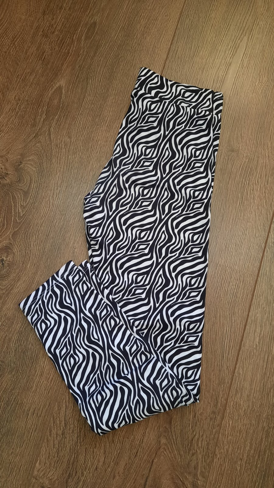 veľmi pekný nosený stav, pružný materiál - kupované nové, boli nosené len dcérkou jej obľúbený kúsok. Odporúčam :)