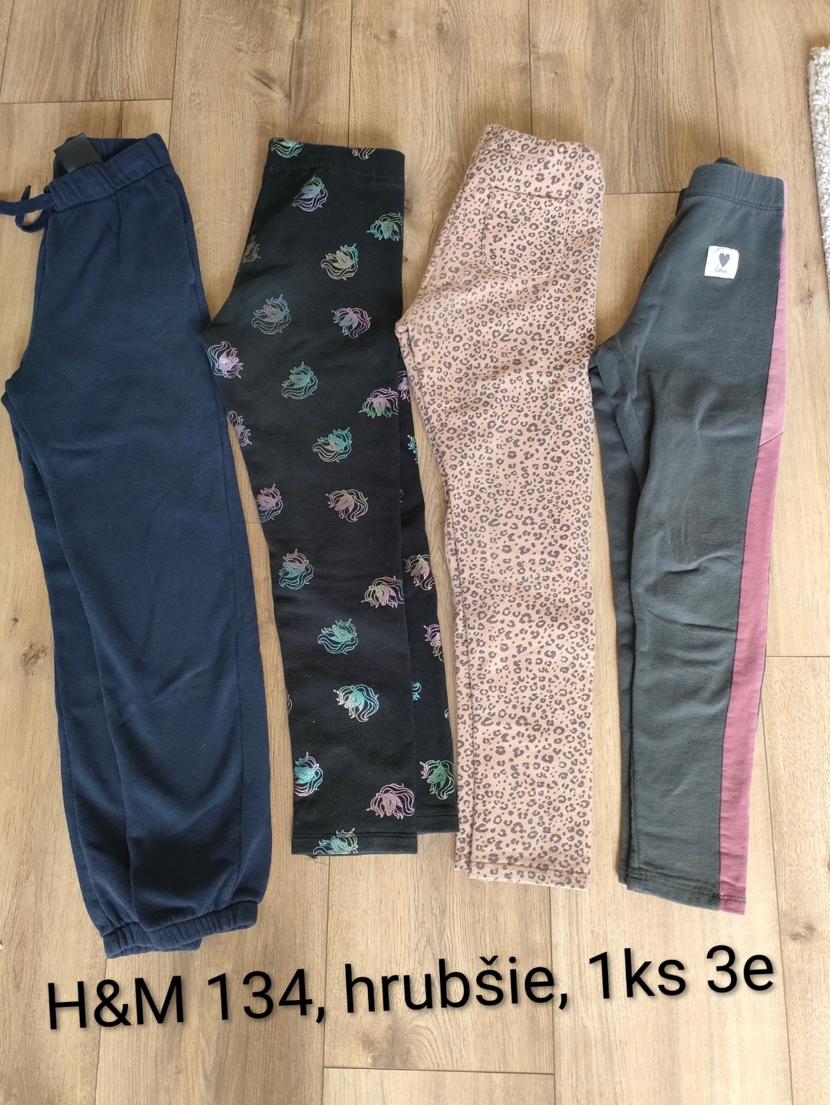 Všetky 3ks veľkosť 134,tak aj sedia, nepremeriavam... tepláky tiež H&M 134...cena za 1ks 3e, legíny s pruhom sú grátis, majú mini dierku