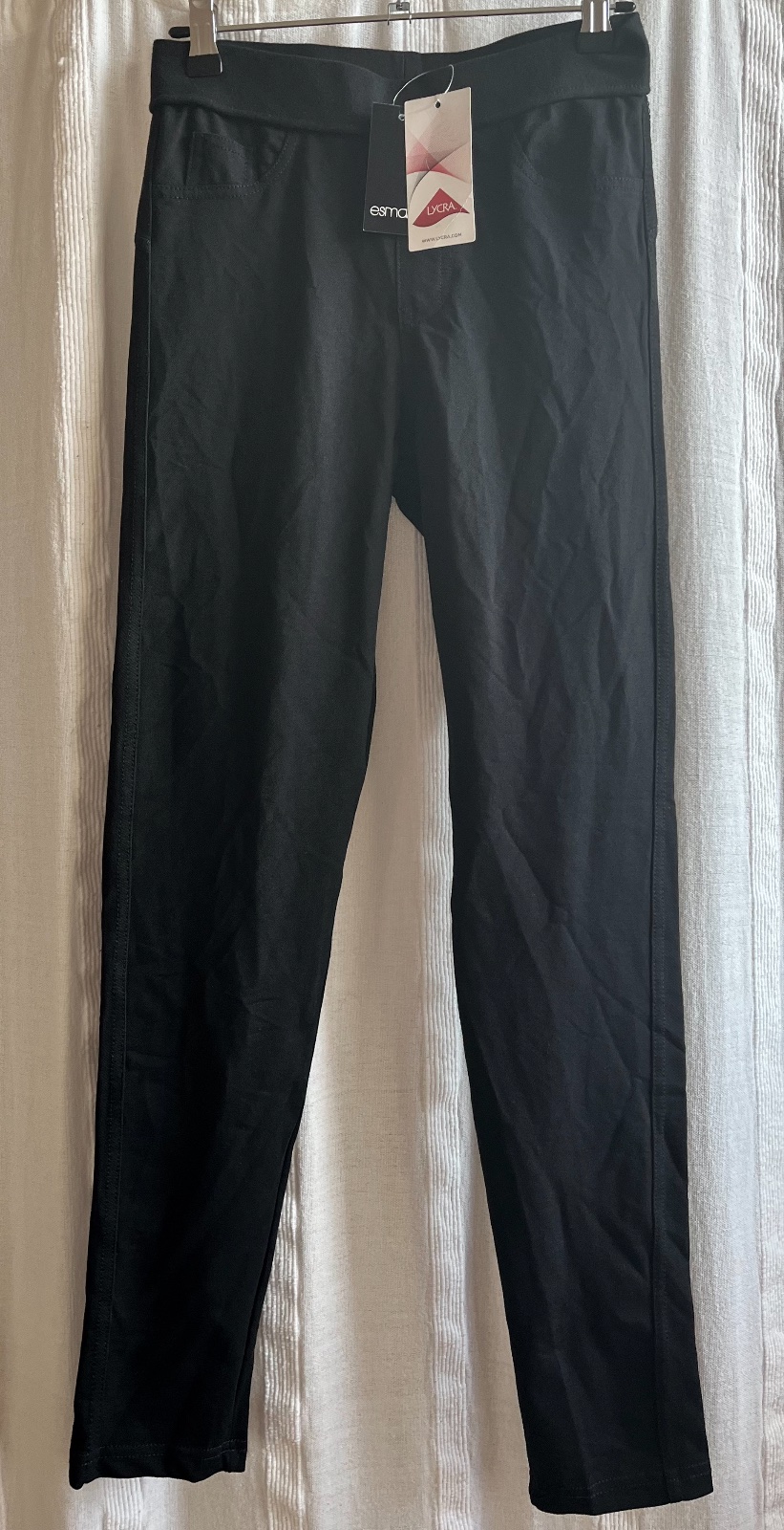 Velmi pekne elasticke jegginy , kupene a zabudnute v skrini Pas na gumu 32cm v klude ( elastický) Celková dĺžka 93cm / vnutorna 72cm