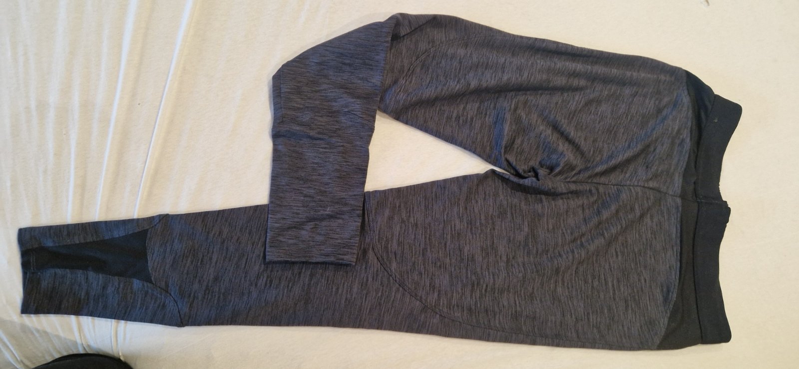 Nosené športové legíny v super stave. Melirovana farba. Funkčná šnúrka v páse. Vzadu na páse vrecko na kľúče. Super stav, nepoškodené