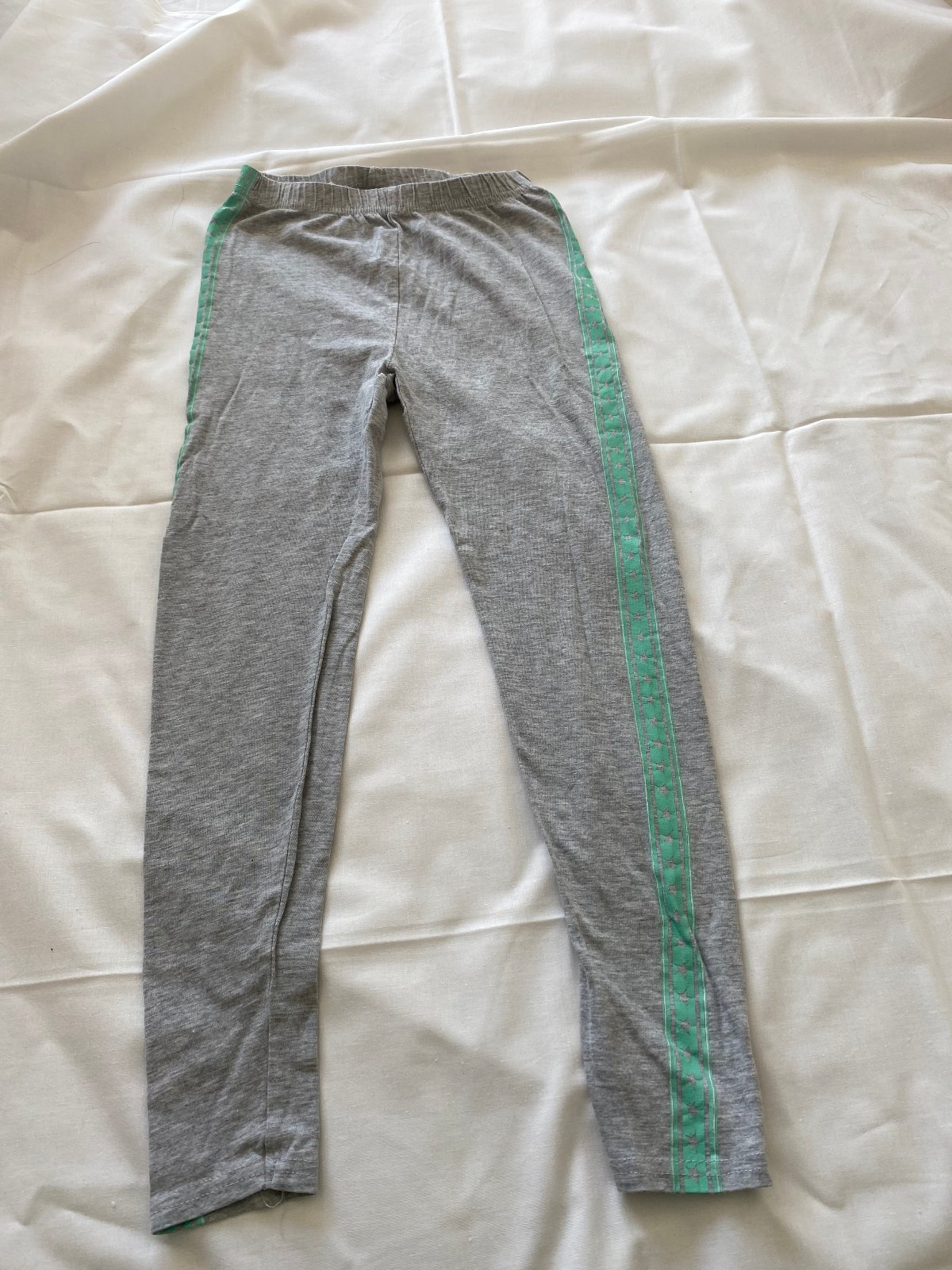 šedé legíny na bokoch so zelenou ozdobou v dobrom stave, dlžka 72 cm, v cene nie je poštovné