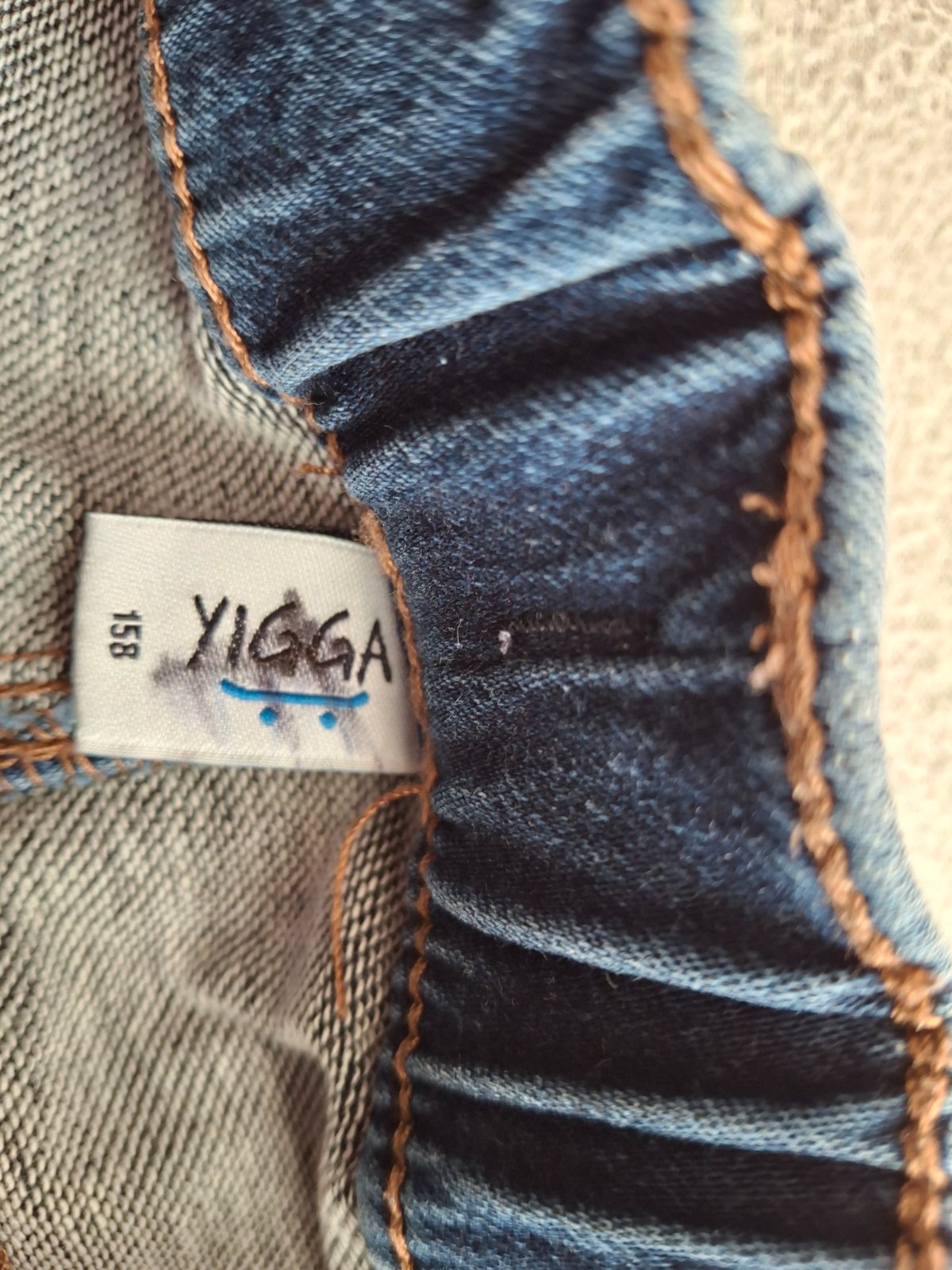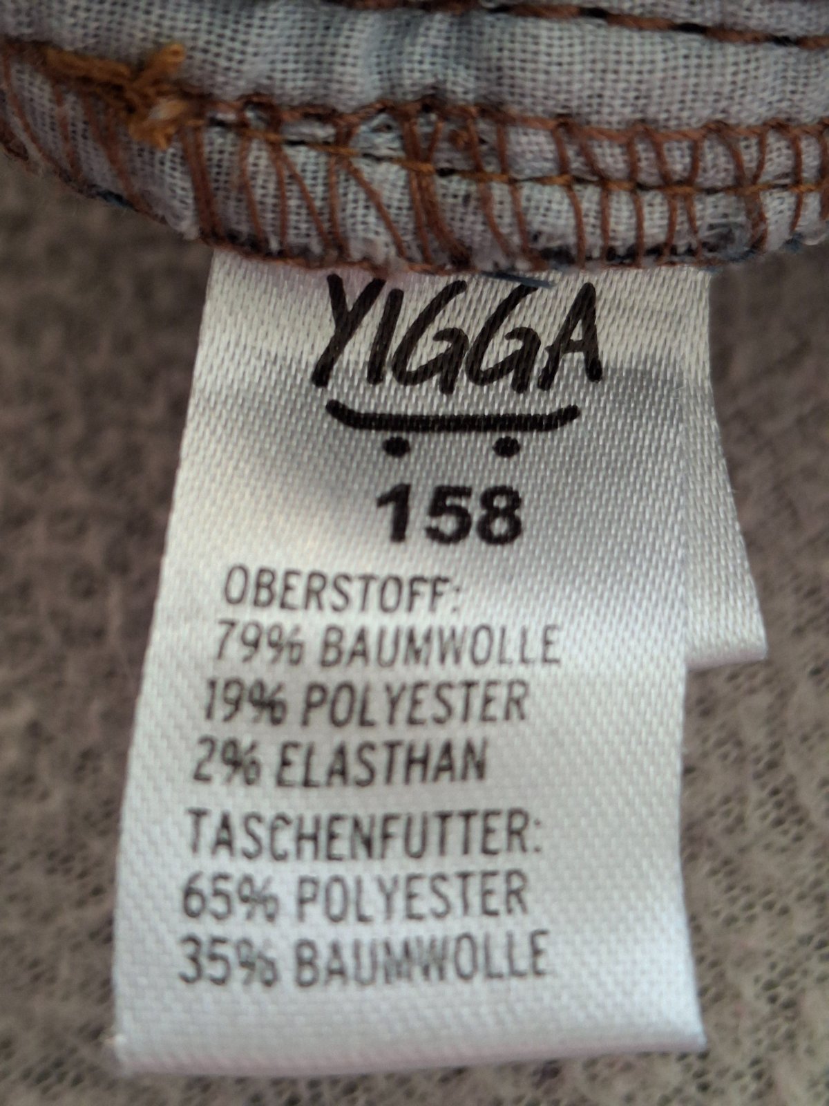 Predám málo nosené dievčenské džeginy bledomodrej farby, zn.YIGGA, veľkosť 158, zloženie: 79% bavlna, 19%polyester, 2% elastan.