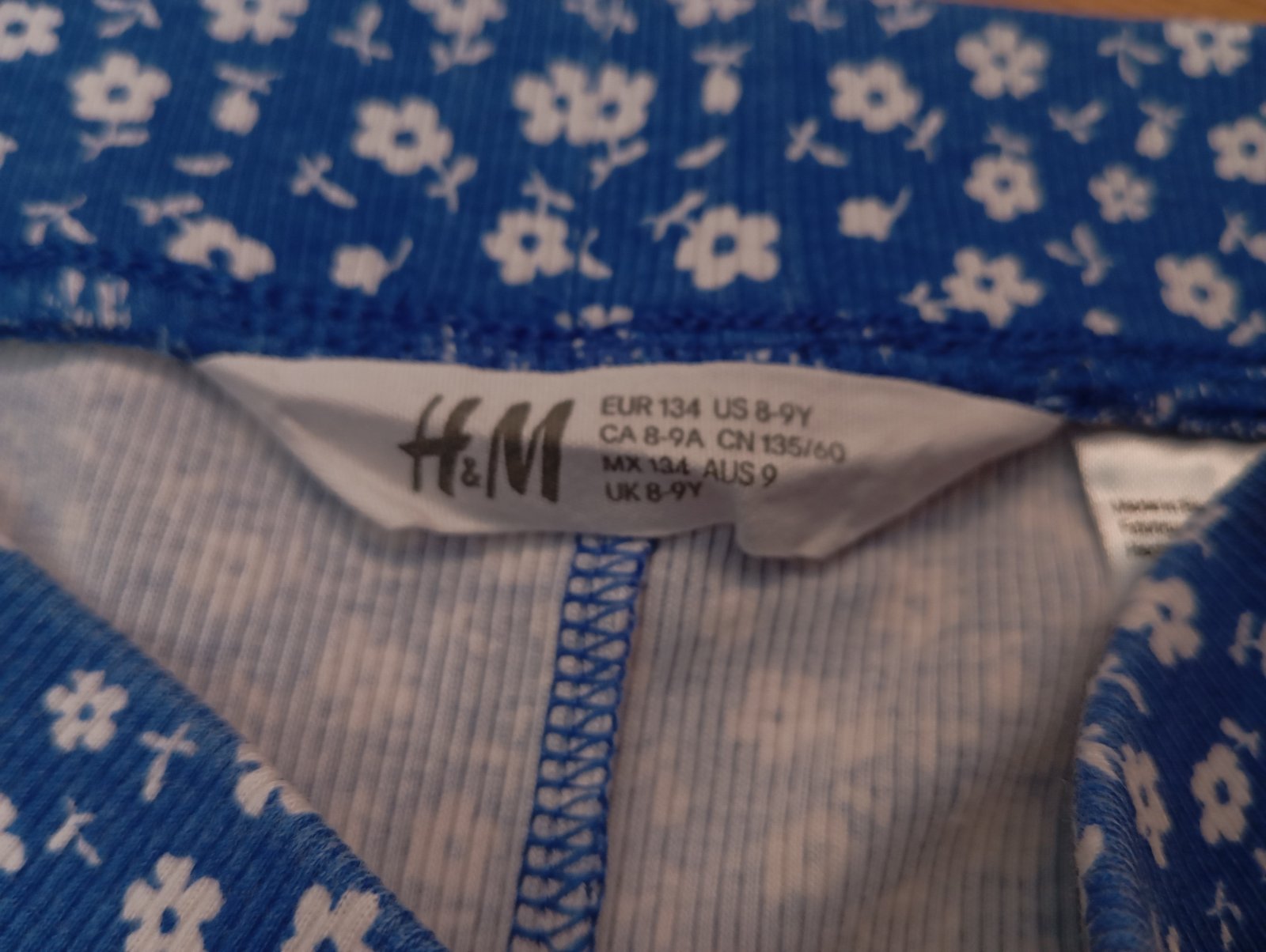 Krásne rebrované legínky, veľ. 134, zn. H&M. Bez poškodení, super stav. Celková dĺžka- 73 cm, pás je na gumu, ale v kľude meria 26 cm. Sú veľmi príjemné na nosenie.