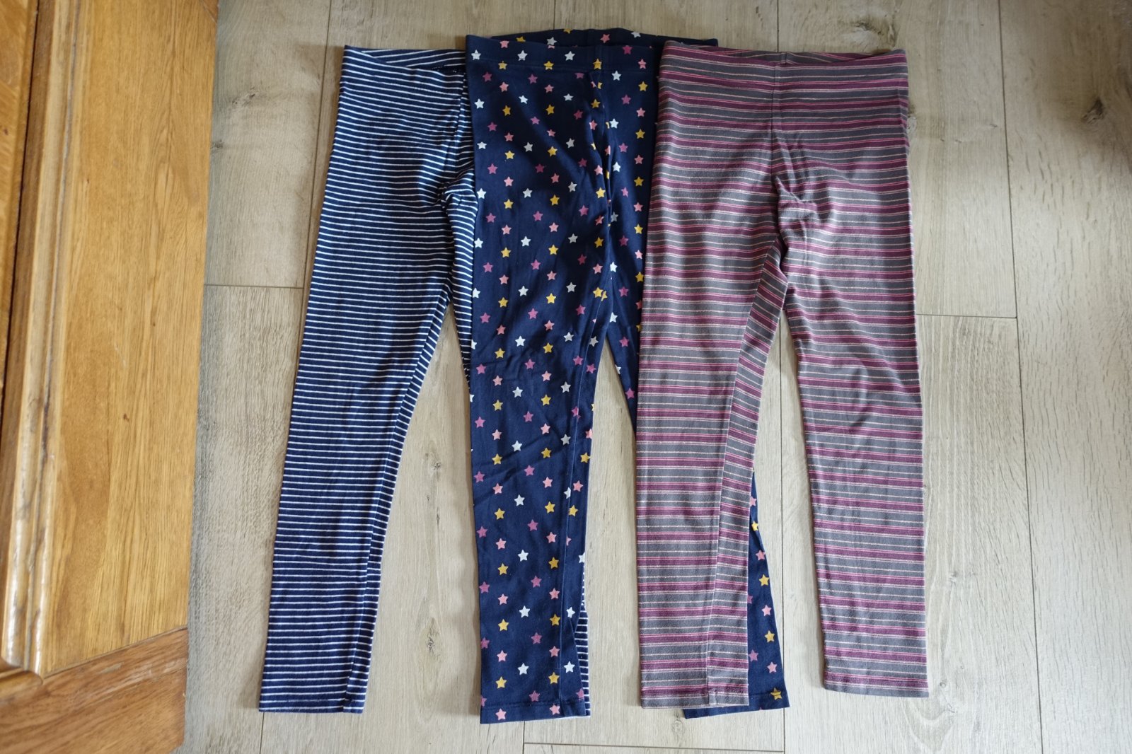 Predám 3 bavlnené legínky. Prvé 2 legínky sme mali iba pár krát, sú v peknom nosenom stave, tretie šedé pásikavé so zlatými pásikmi sme nosili viac, tam už žiaľ pri naklonení sa začína robiť chĺpoček z prania, ale nie sú žmolkavé, tie prikladám iba na donosenie, ako darček. Cena je uvedená za všetky spolu, jednotlivo nepredám.