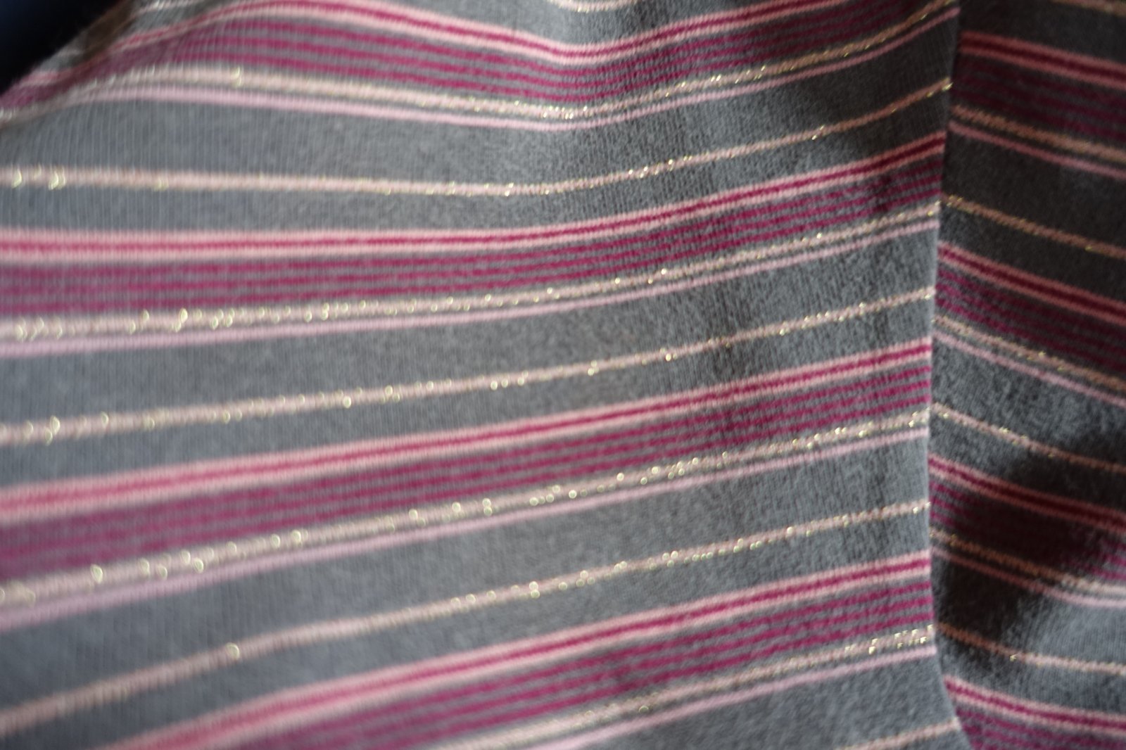 Celková dĺžka pásikavých šedo ružových legínok je 68 cm a šírka pásu 26,5 cm. (G)