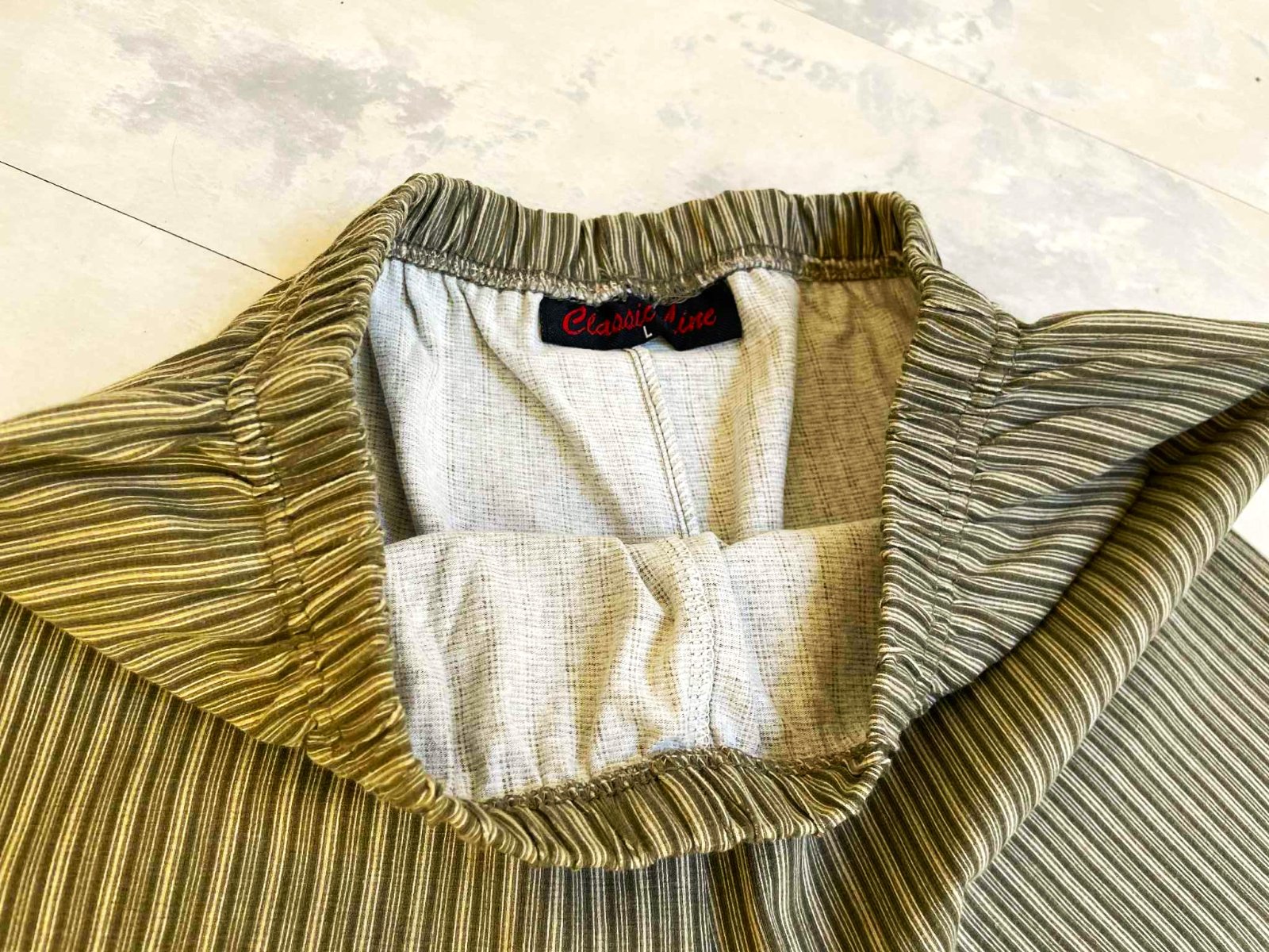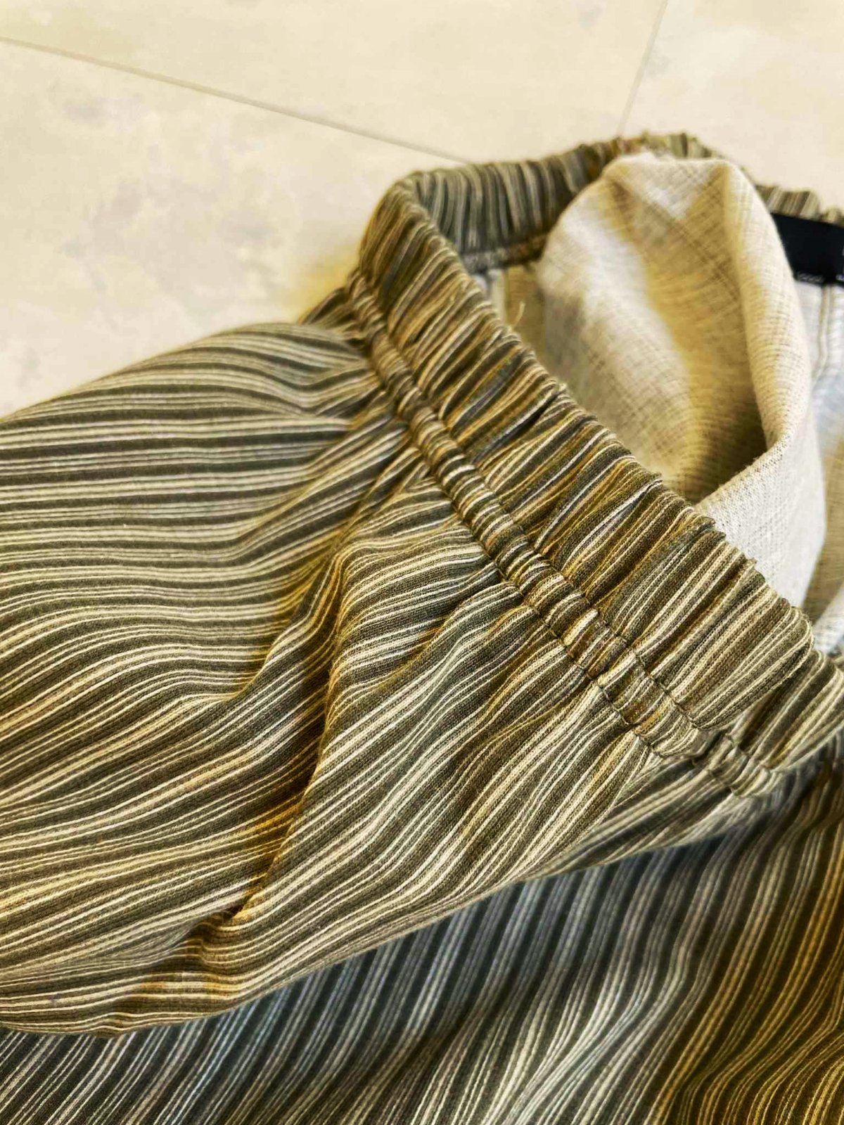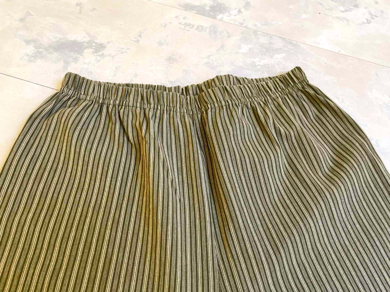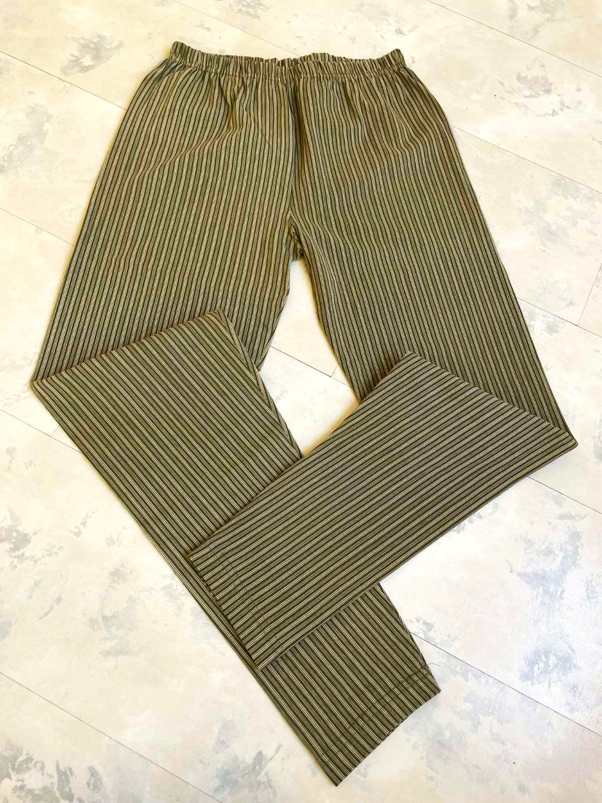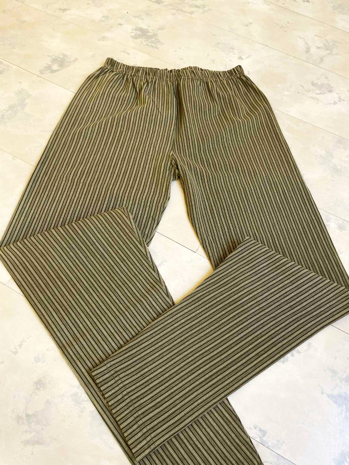 pekné legíny,elastický - ale pevný materiál,zoštíhľujúce vďaka pruhom,uvedená veľkosť L,