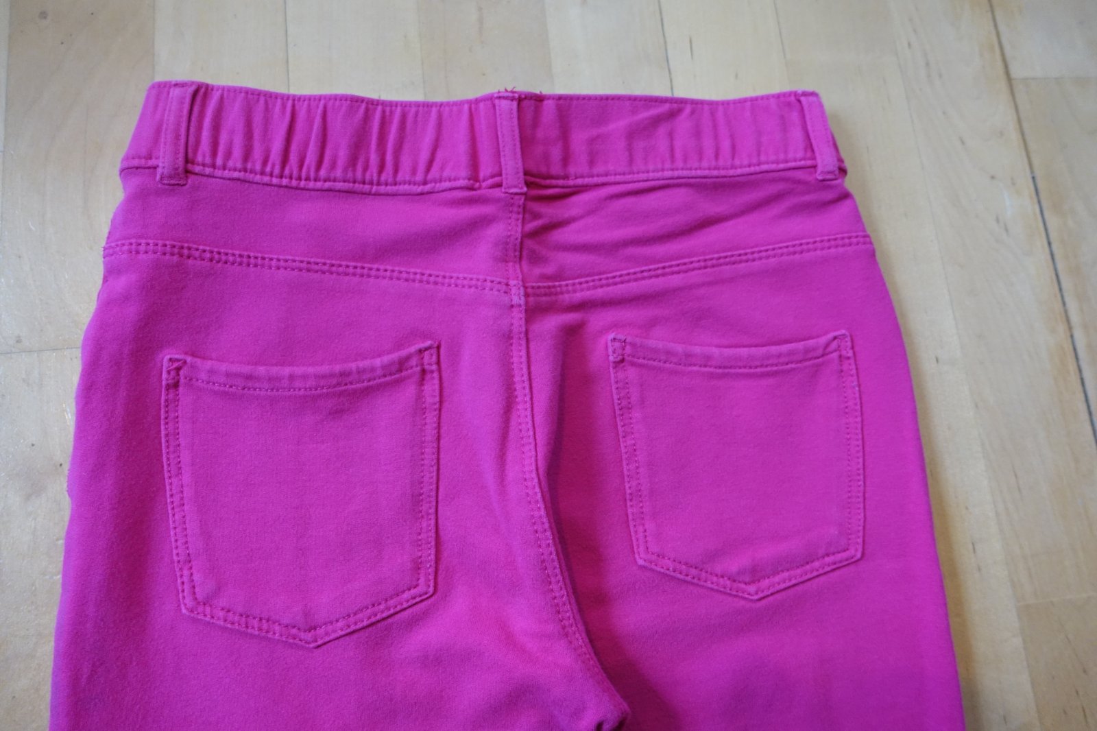 Predám krásne hrubšie džegíny. Veľkosť je síce uvedená na 158, ale určite sú menšie. Nám boli dobré vo veľkosti 152. Riaďte sa prosím mierami. Farba je taká krásna sýta ružová. Sú mäkučké, teplučké (sú len hrubšie, nie sú podteplené), veľmi pohodlné. Mali sme ich 2-3x max, ale sú v krásnom stave. Nemajú fľaky, žmolky, či iné poškodenie. Celková dĺžka je 87 cm, od rozkroku 64 cm. Dĺžka pása v kľude je 32,5 cm, ale natiahne sa na 36 cm.
