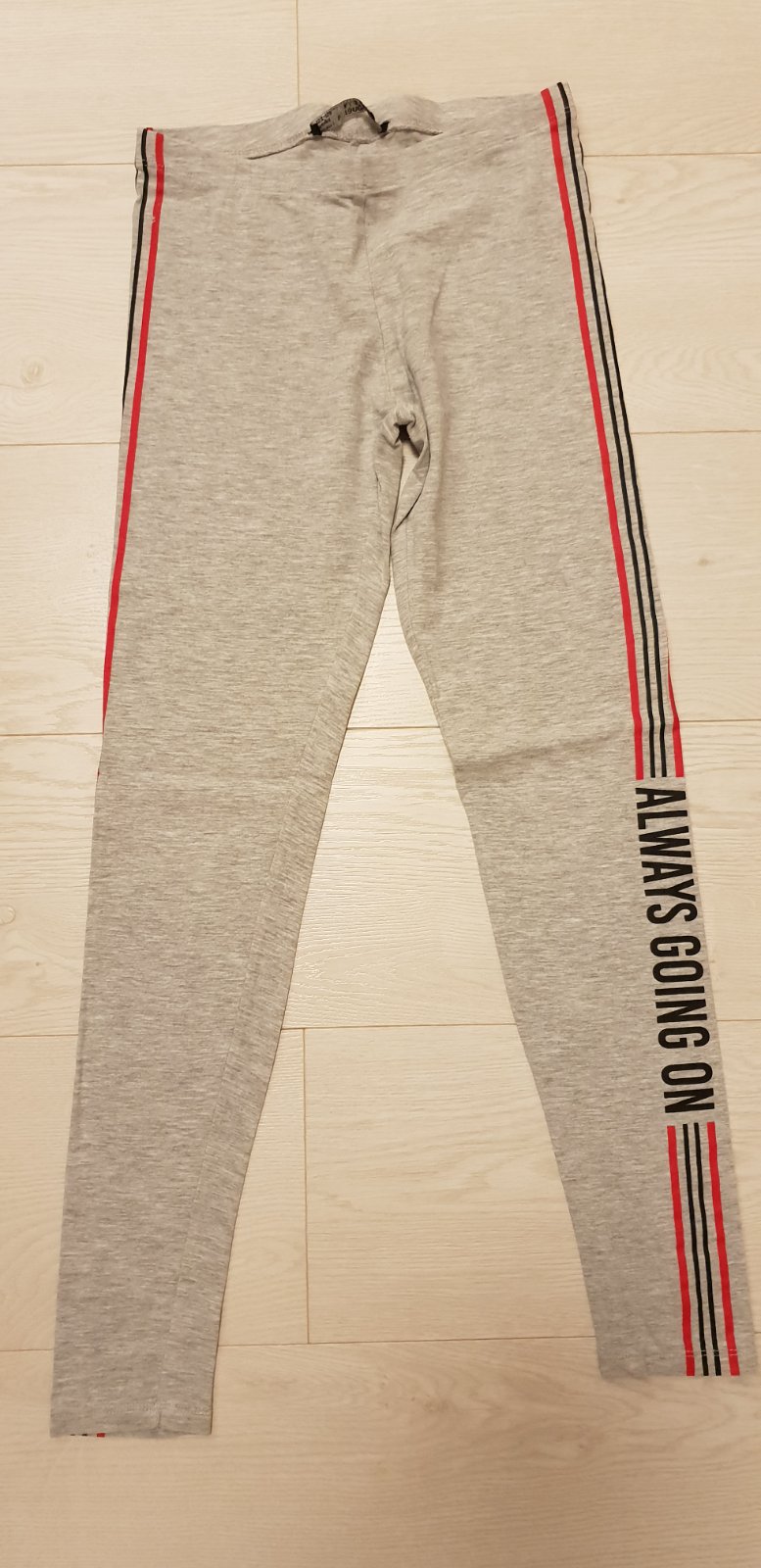 Bez poškodenia, legínky s bočným pasom. Dlzka 86cm, sirka vklude 31 cm.