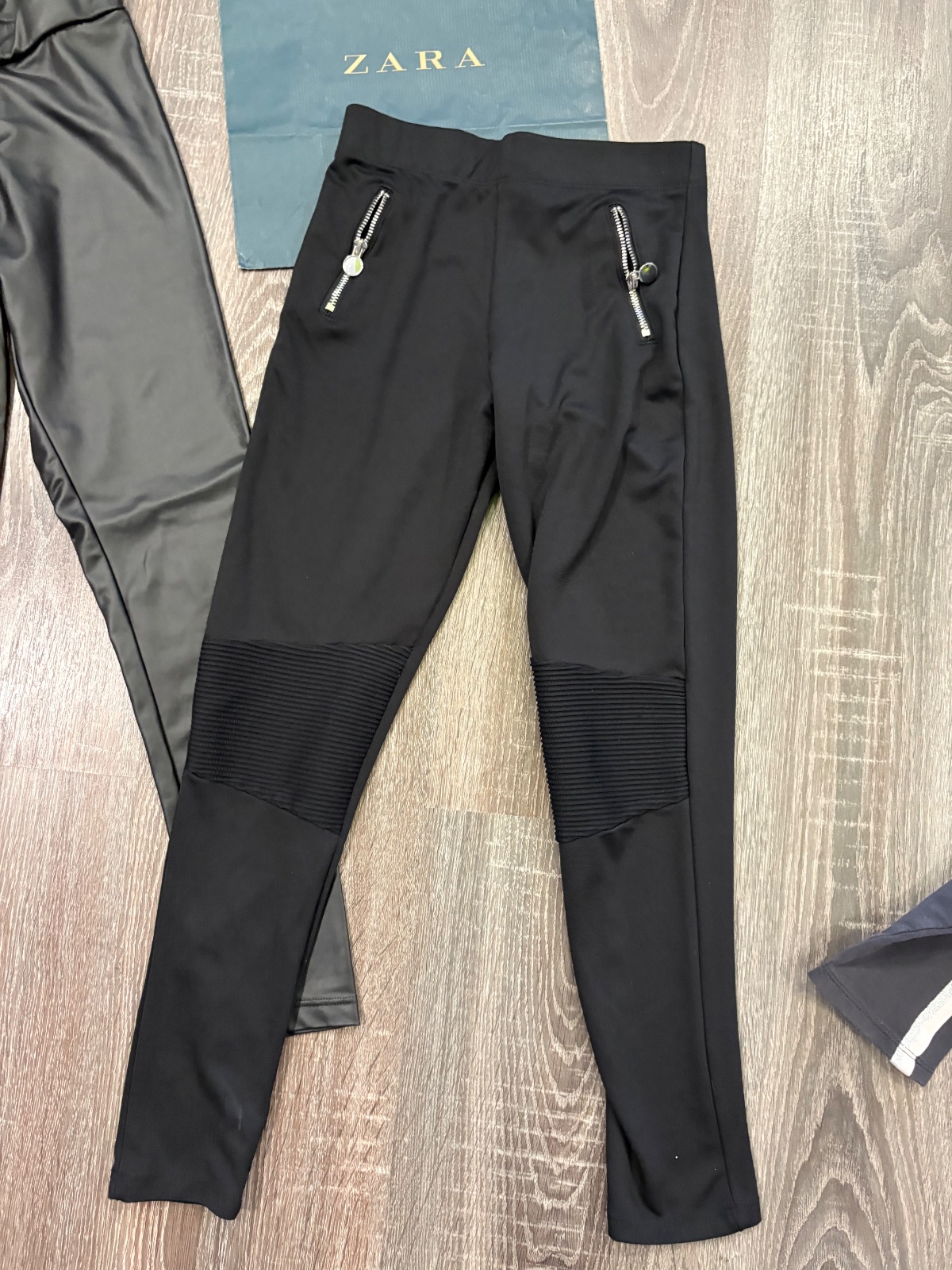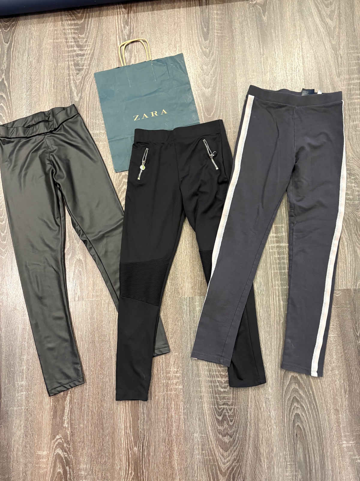 010.Zara cierne kozenkove leginy vo velkosti 140, mini poskodenie na kolenie.F&F cierne elasticke leginy velkost 10-11rokov.H&M šede elasticke bavlnene leginy