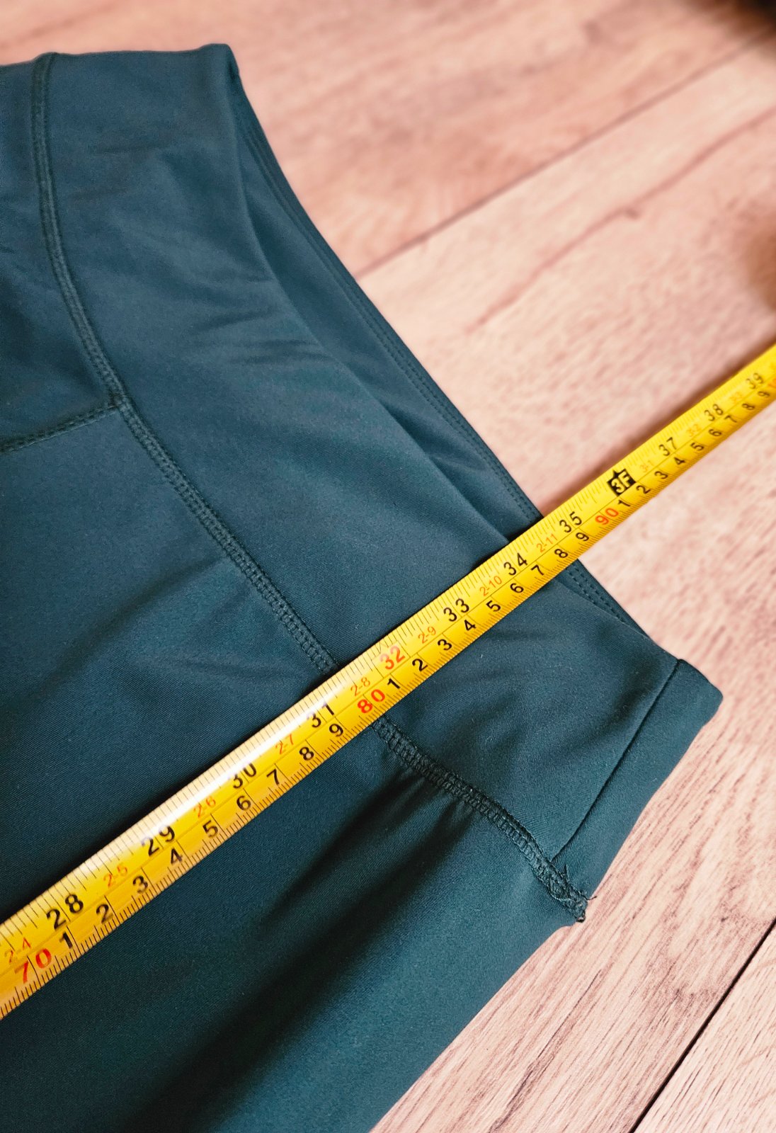 Krásne dámske legíny, vo veľmi dobrom stave. Farba na fotke je skôr tyrkysová ale na živo je to úplne iná krásna sýta tmavozelená, bohužiaľ nijak sa mi ju nepodarilo zachytiť. Štítok odstrihnutý odhadujme medxi S-M. Miery na fotkách.