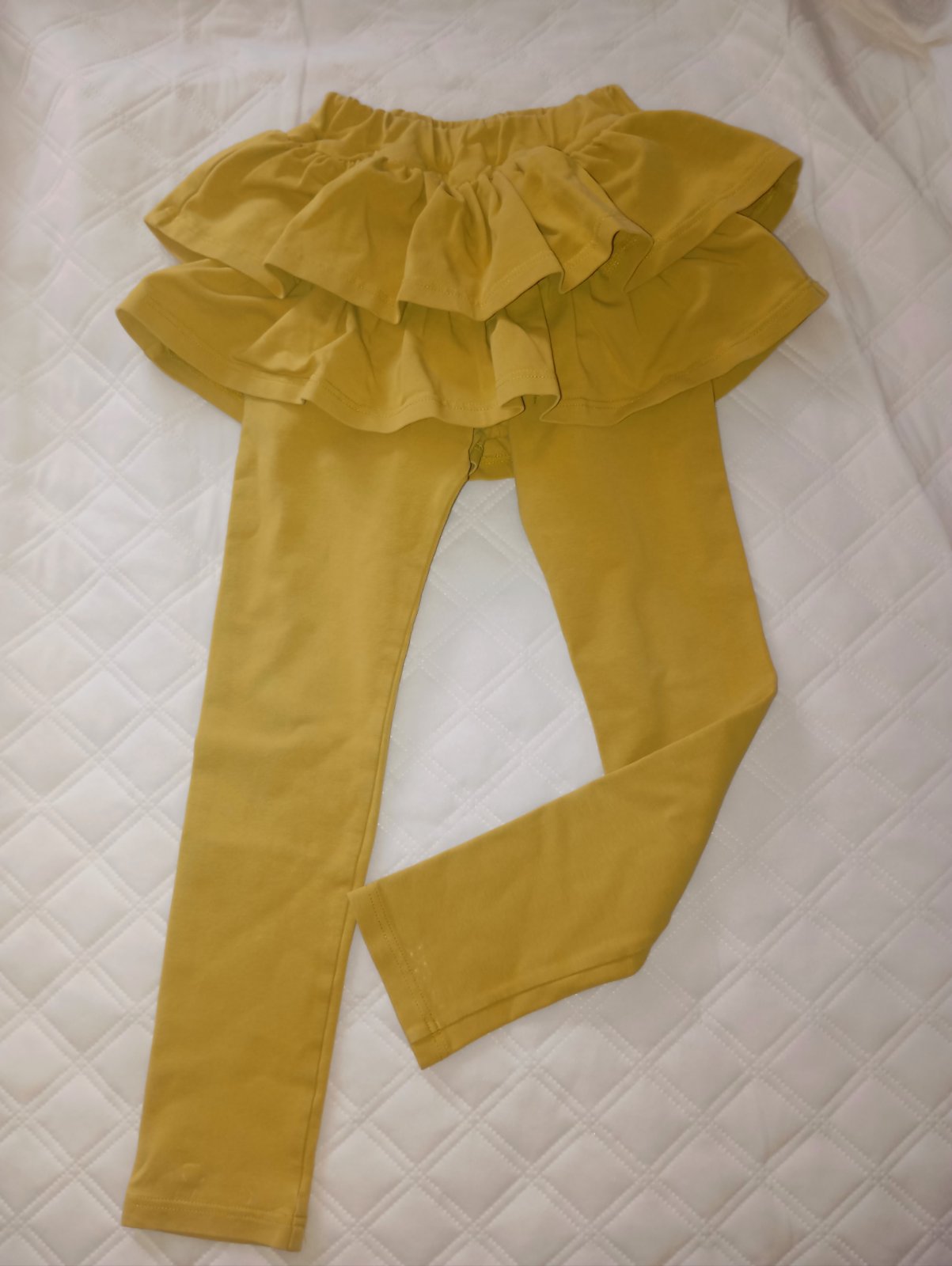 Milé guľôčkové legíny /dostupné už len v horčicovej farbe/ vo veľkosti 116/122, možnosť kúpiť tiež ako súpravu s mikinou za 25 Eur. Viď foto.