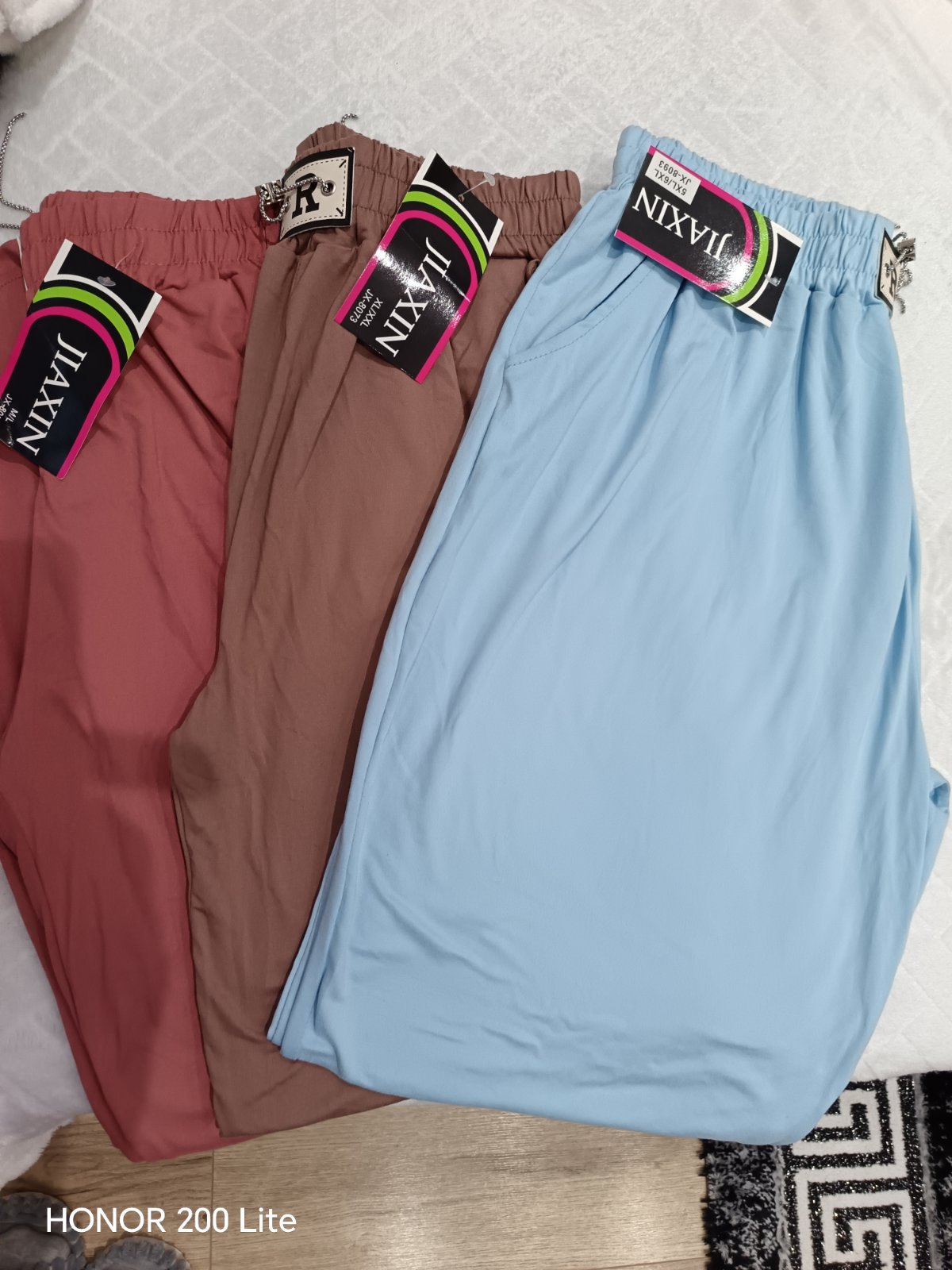 Nové s visačkou, super sedia. Na boku vrecká, pas na gumičku. Veľkosť M/L, XL/XXL, 3XL/4XL,5XL/6XL.M/L pas od 64 cm do 104 cm. XL/XXL pas od 70 cm do 106 cm, 3XL/4Xl pas od 78 cm do 116 cm, 5XL/6XL pas od 80 cm do 138 cm. Sú super elastické, pohodlné.
