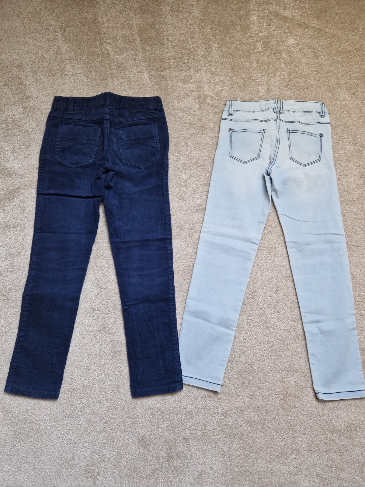 Elastické skovne leginky, bledomodra riflovina. Pohodlné funkcne vrecká. Pás 56 cm, regulovateľný. Dĺžky 78/55cm. Máličko nosené. Dobre sa kombinujú. Mencestraky Mark&Spwncer darujem.