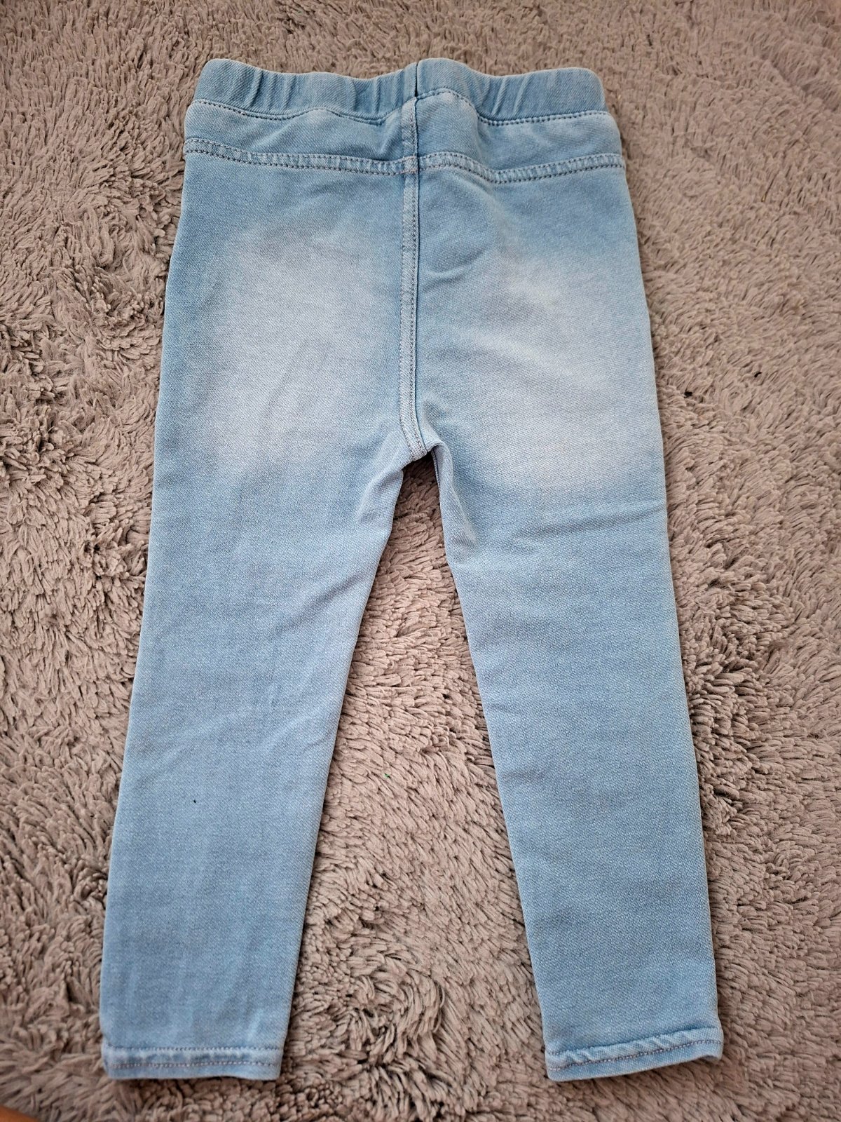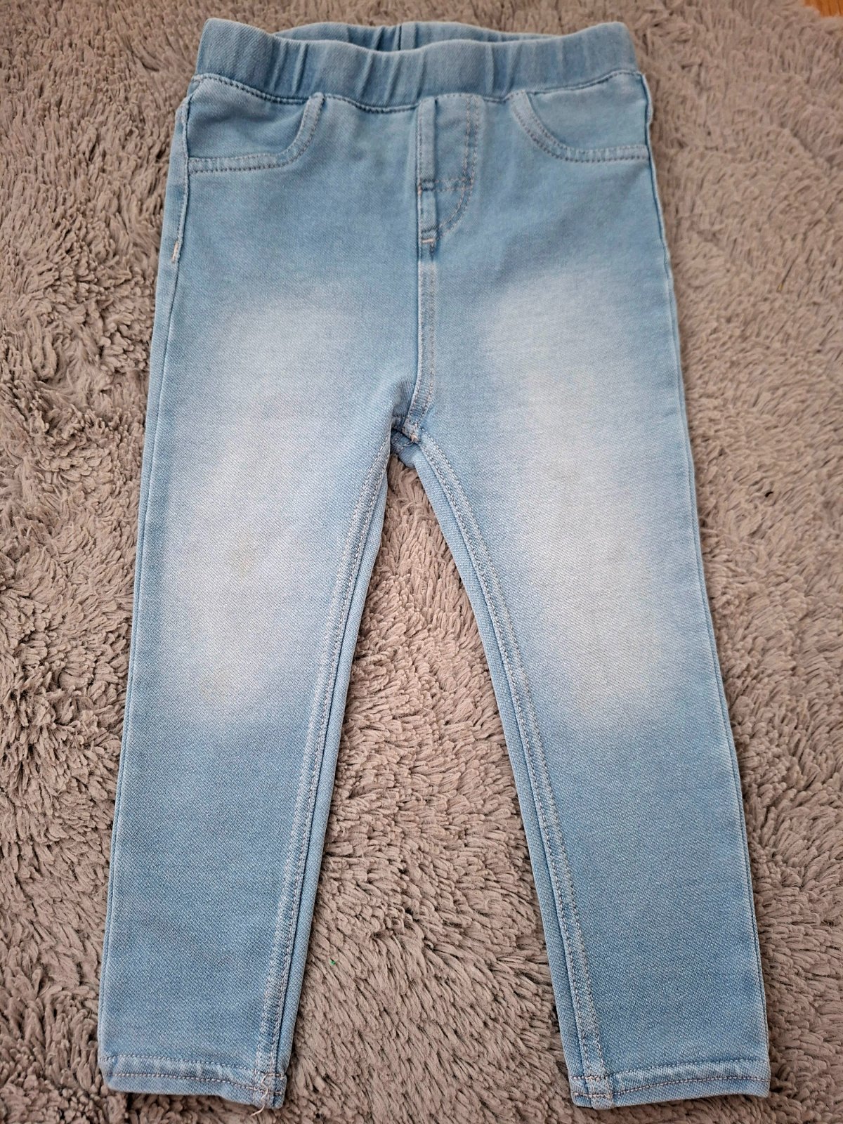 Skvelé jegginsy zn. H&M, veľkosť 86. Výborný stav, akurát na ľavej strane slabé pozostatky po fliacikoch. Pri nosení - prehliadnutelne. Cena 4,50 eur