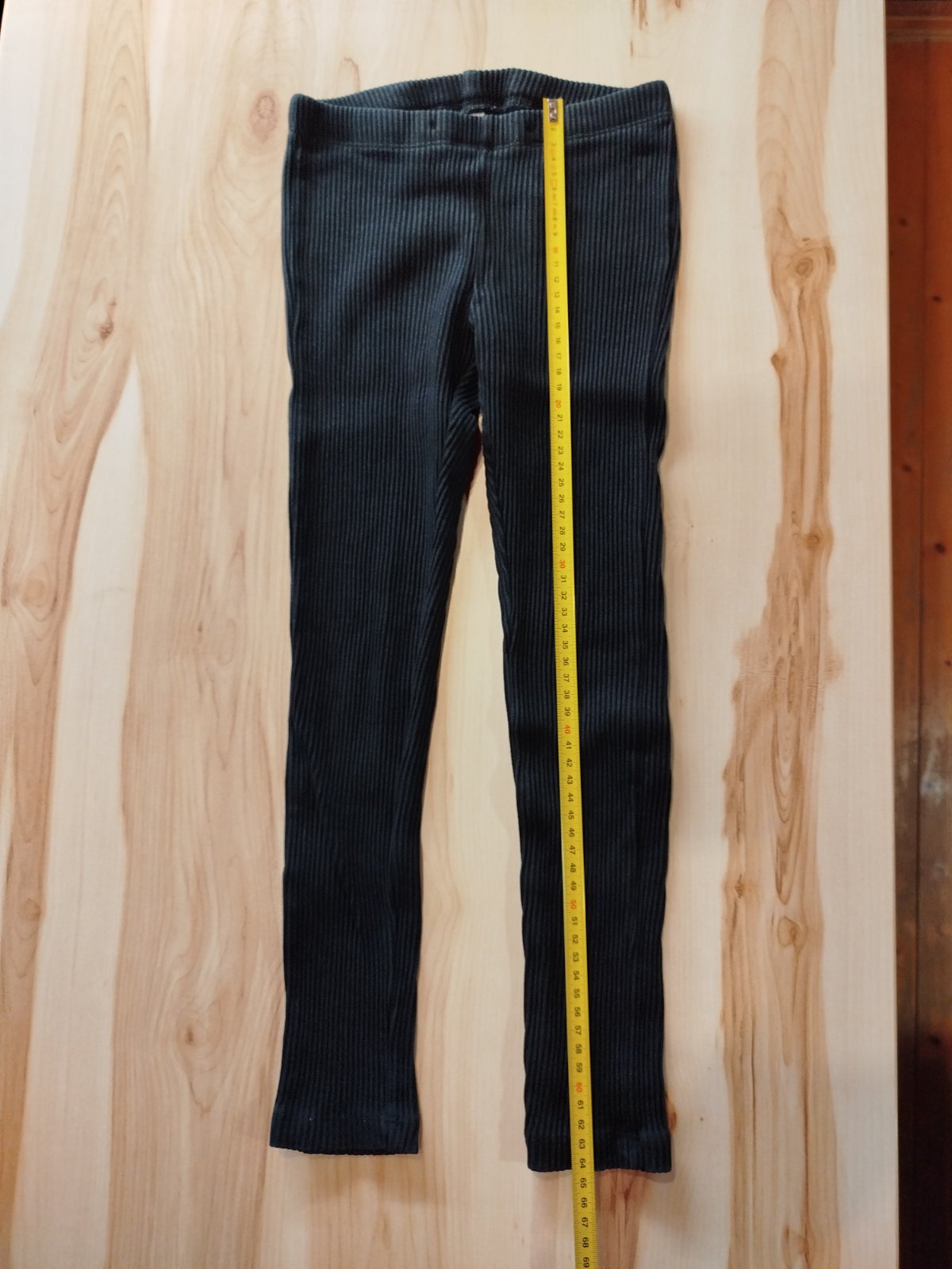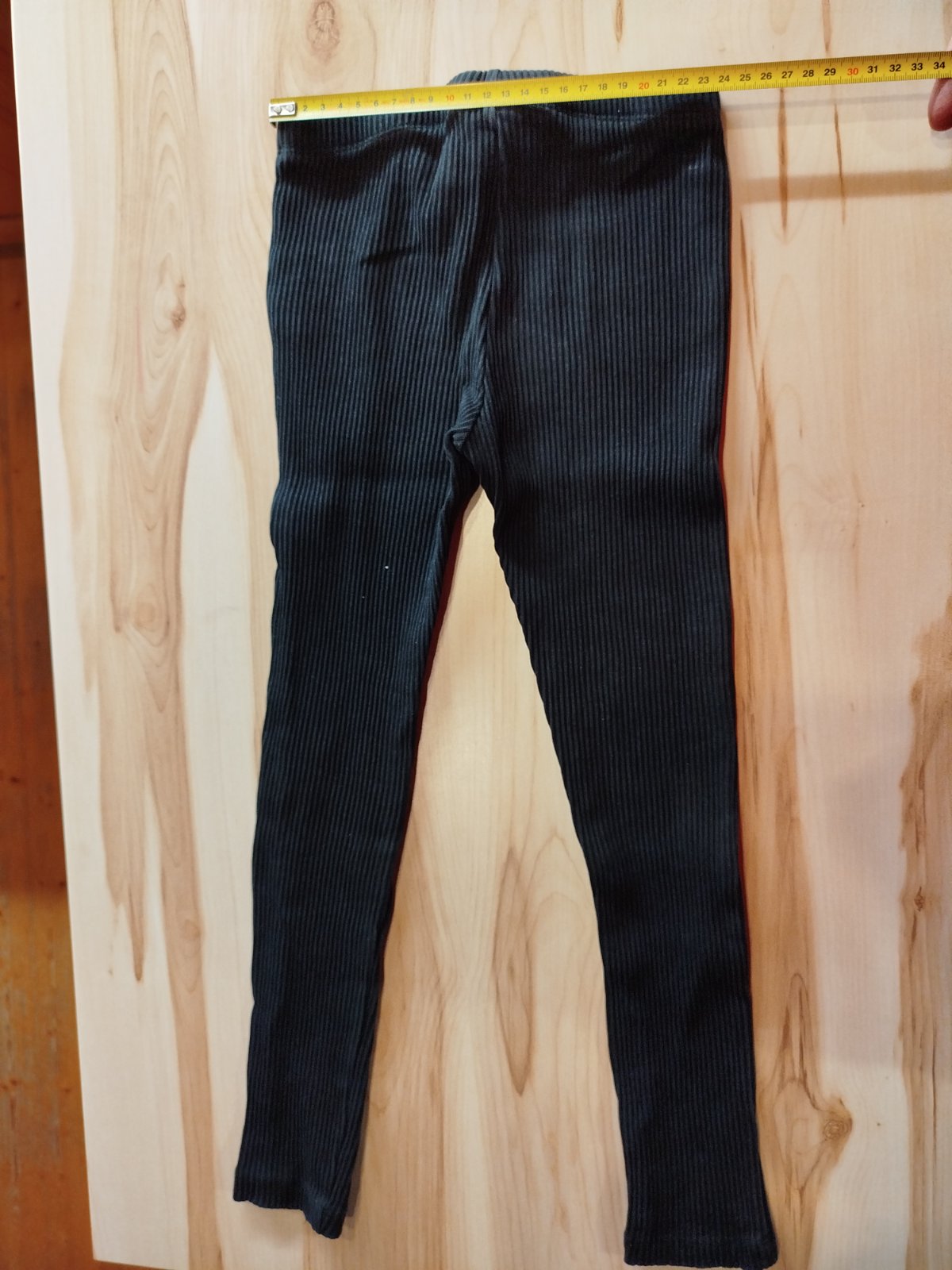Teplé hrubé legíny s hrubšími kolenami. V páse na gumičku bez možnosti regulácie. Rozmery: dĺžka 64 cm, šírka 25,5 cm.