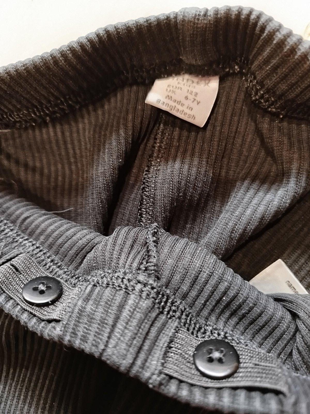 015.Lindex legíny s tvarmi vo velkosti 122 na 6-7 rokov,v pase je stahovacia gumka.Dlzka je 66cm a sirka v pase je od 24x2cm do 32x2cm.F&F nove cierne leginy na 7-8 rokov no velkostne sedia presne ...