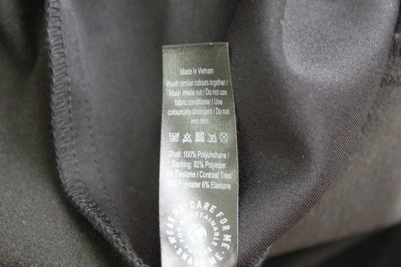 Čierne, priliehavé legíny, ktoré majú vsadené bočné panely z materiálu s koženým vzhľadom, zatiaľ čo zvyšok je z látky príjemnejšej na dotyk .Sú navrhnuté tak, aby sa dali nosiť na rôzne príležitosti, od bežného denného nosenia až po večerné outfity, napríklad s lodičkami alebo čižmami.