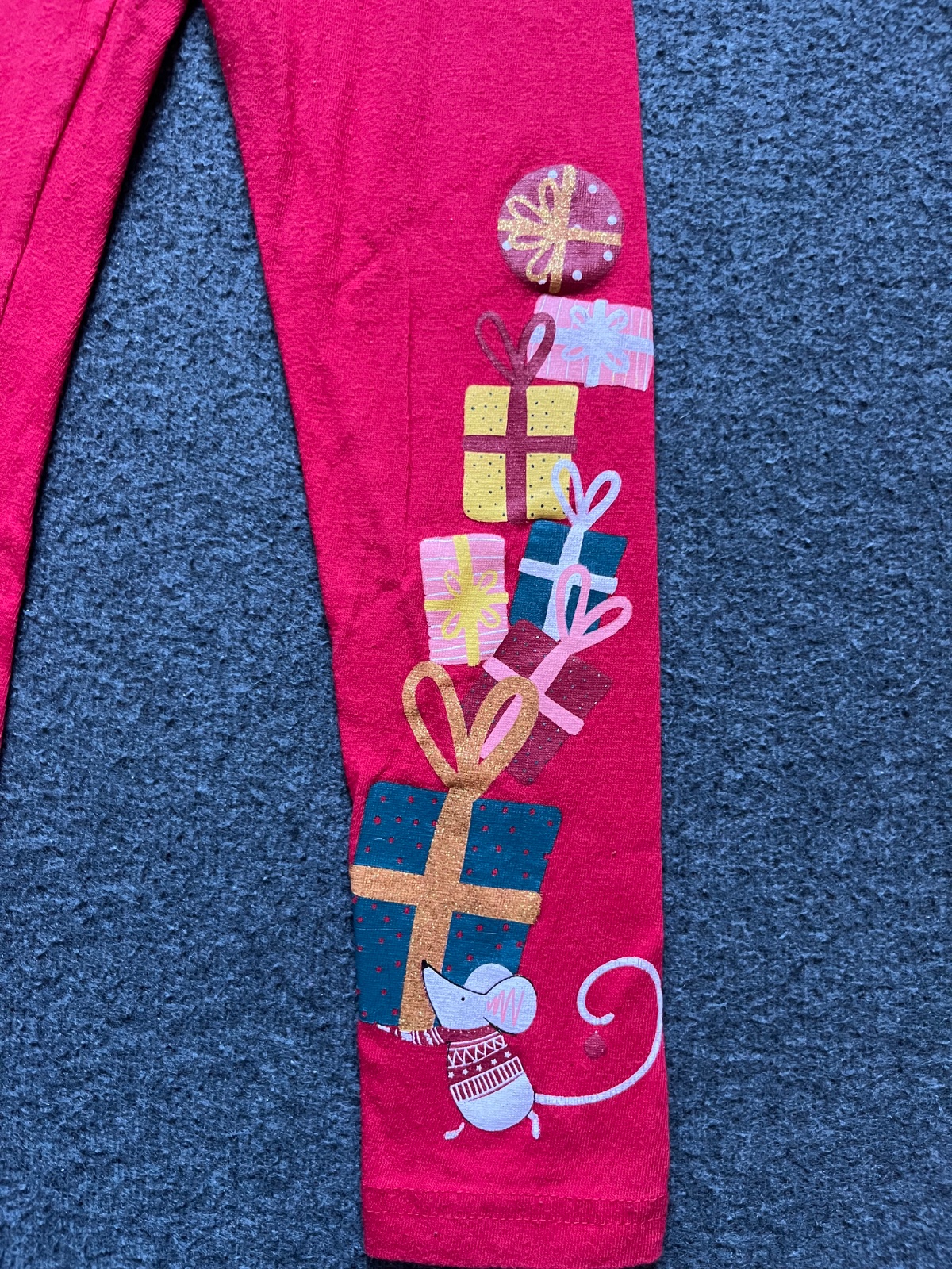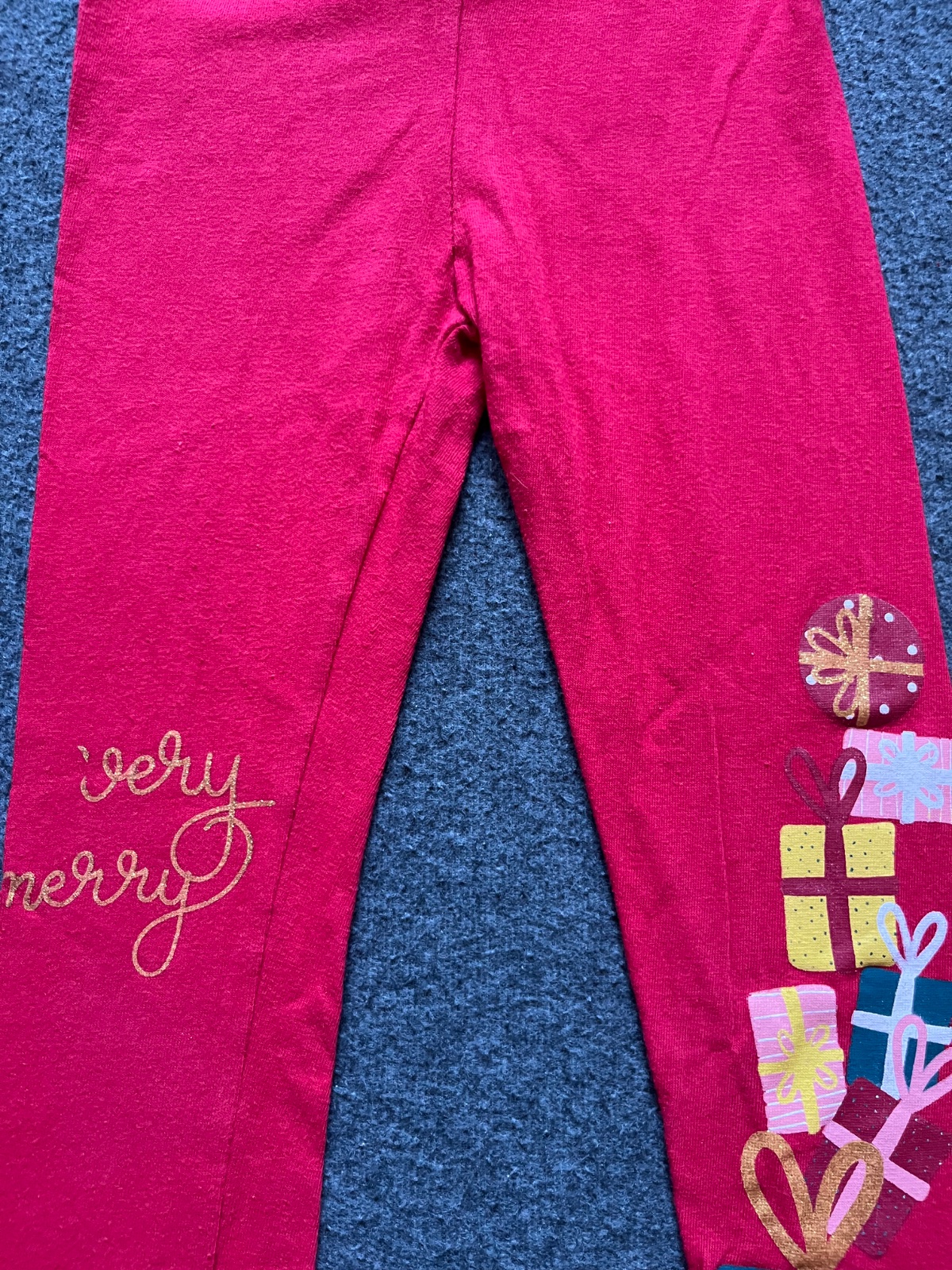 Používané vianočné leginy. Bez poškodení. Maximálne jemnulinky prací chĺpok. Veľkosť 104