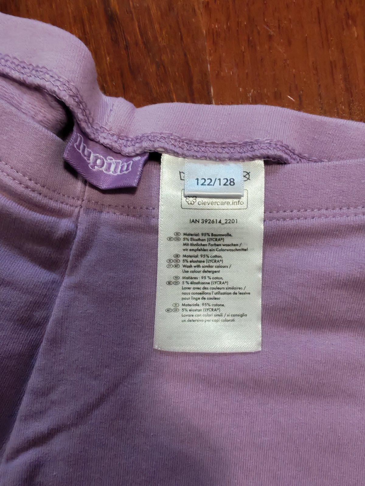 Levanduľové a bordové termolegíny na prechodné obdobie, zn. lupilu, veľkosť 122/128, málo nosené. Cena spolu.