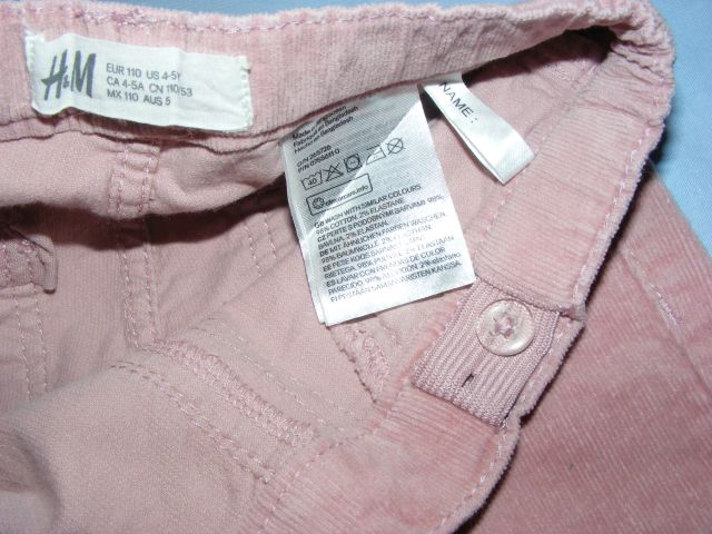 Veľkosť uvedená 110, premerajte: dĺžka 62 cm, vnútorná dĺžka 45 cm, pás 24-30 x 2 cm.