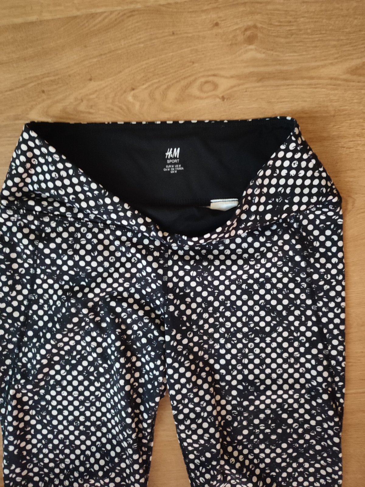 Krásne športové legíny. Písaná veľkosť M, no sedia aj na S. Rozmery sú vo foto. Bez poškodení. Zozadu je pod kolenami sieťka. Majú reflexné prvky.