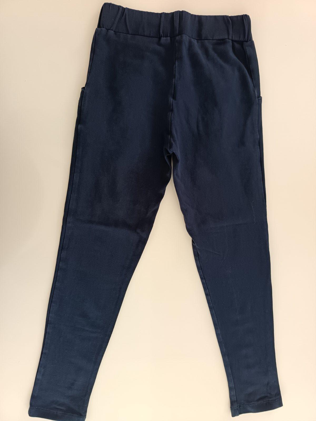 Tmavomodre legíny, zpredu dva funkčné vrecká a riasením, čo pekne ukáže na postave, bez poškodenia