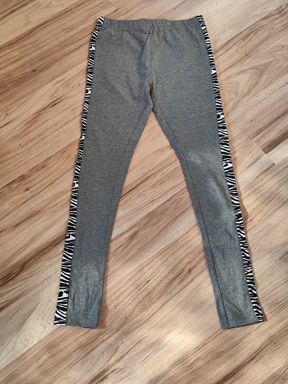 Tenšie legíny, minimálne nosené. Rozšírený strih, dole efektné "vlnkovanie". Rozmery: pás: 2x28cm, dĺžka vonkajšia: 96cm , vnútorná: 72cm. Bez poškodení, v super stave, nevyblednuté. Cena spolu.